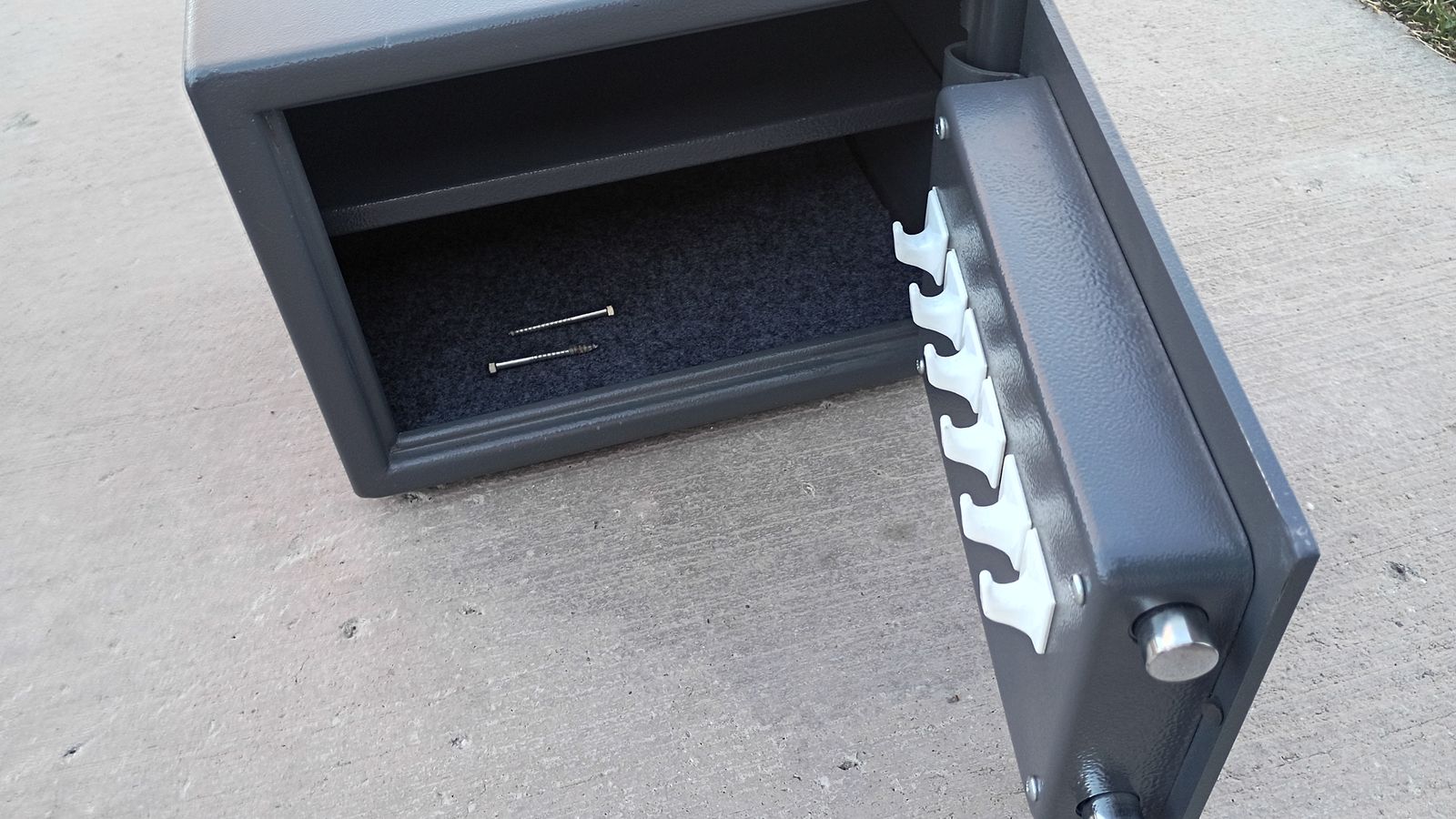 This is a good quality personal safe. I was thinking of welding additional plate steel on the top, bottom, and sides to beef it up even more. It has holes drilled in the bottom and in the back so you can bolt it to the floor or to the wall. I still might do that if I end up not selling it. The hinge on the door is internal. It cannot be cut off with an angle grinder.