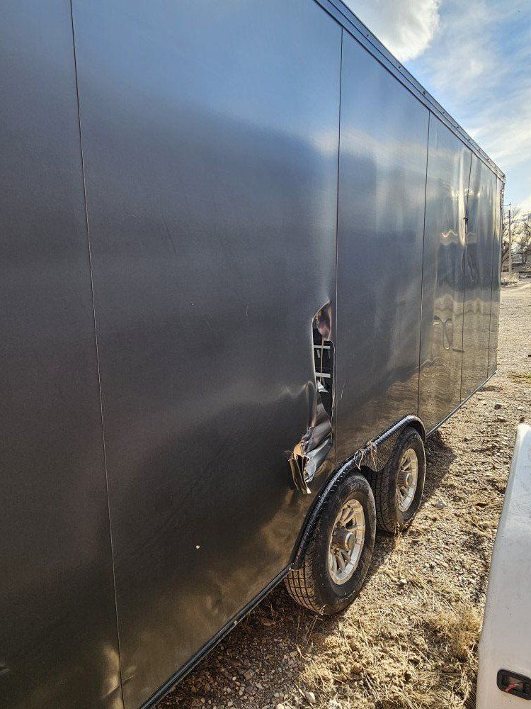this was a great trailer it was blown over in a wind storm and suffered some damage rear end is a little tweaked with some mental missing. Will consider trades for flatbed trailer. 5000 or make honest offer nothing else I'll fix it or make it a flatbed. call or text only no.scams no b.s