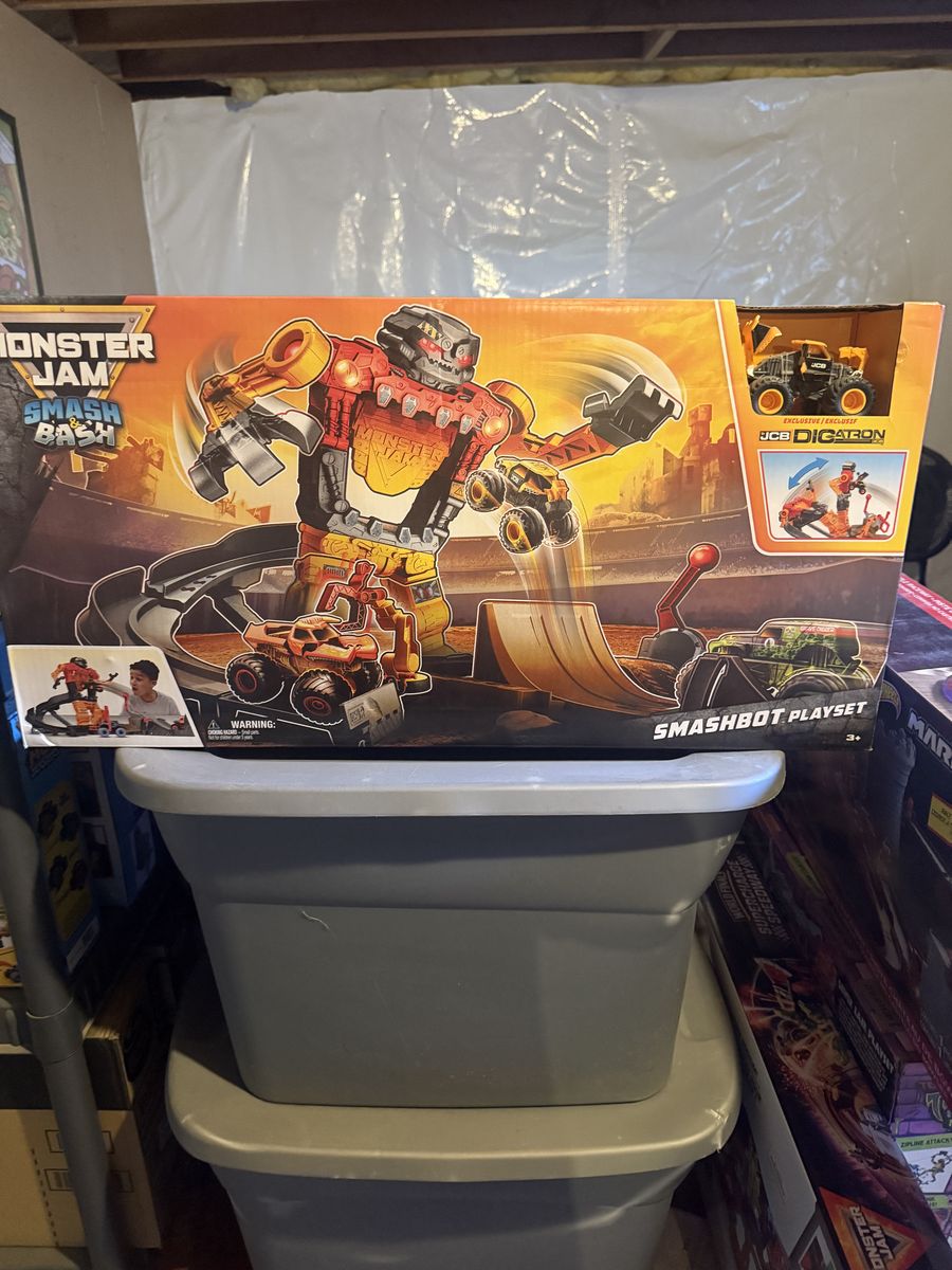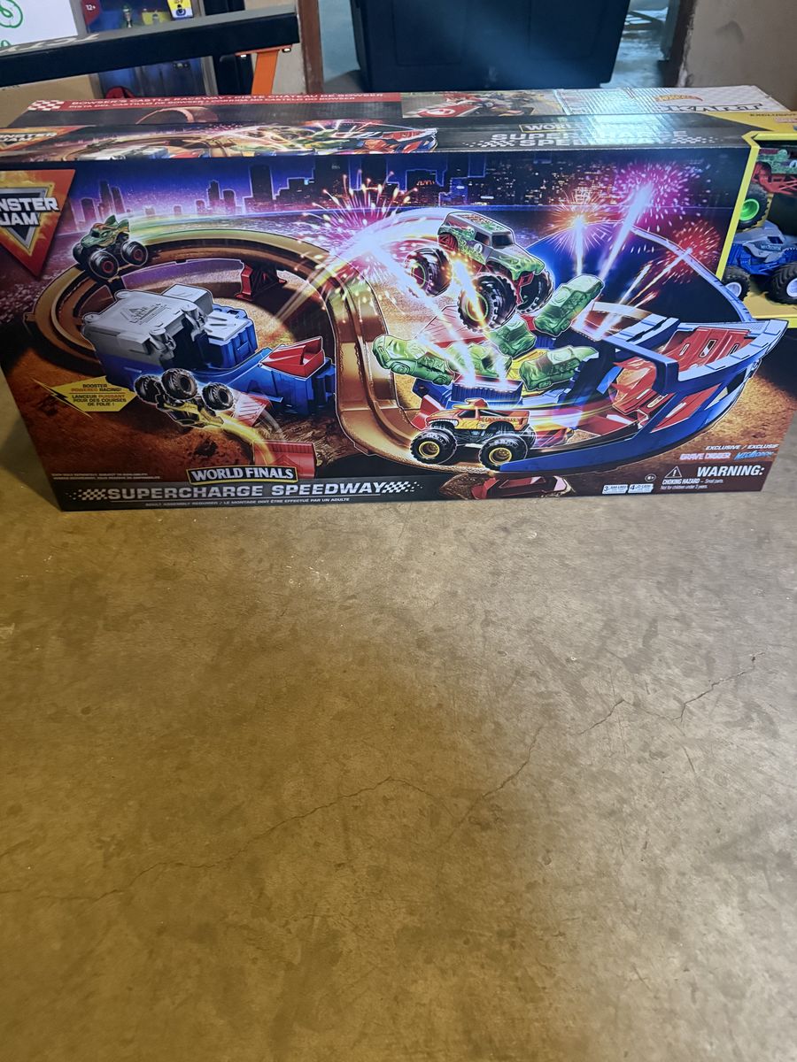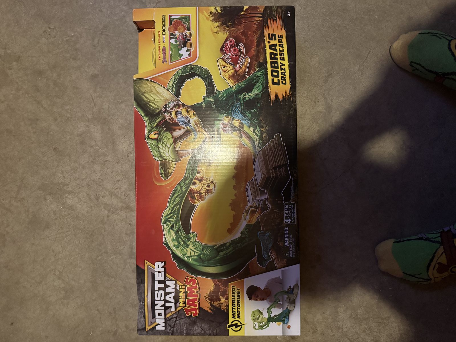 Everything is brand new never opened and the last box is the Monster Jam car wash $120 cash only and I’m not selling individually. It’s a package deal. The item in the brown box is the monster jam car wash set and the cobras crazy escape is missing the 2 small tricks that are supposed to be included but the box itself has never been opened. Text Justin 3852874463