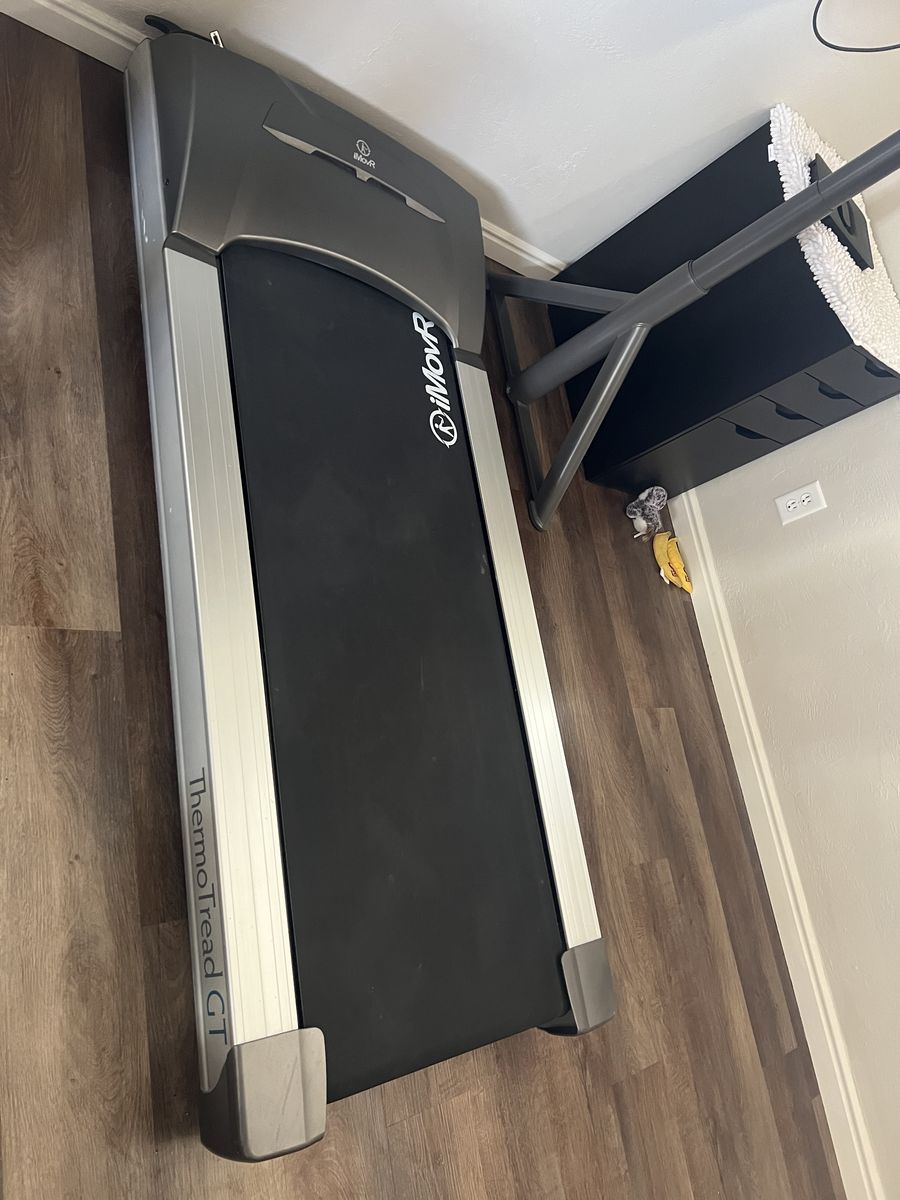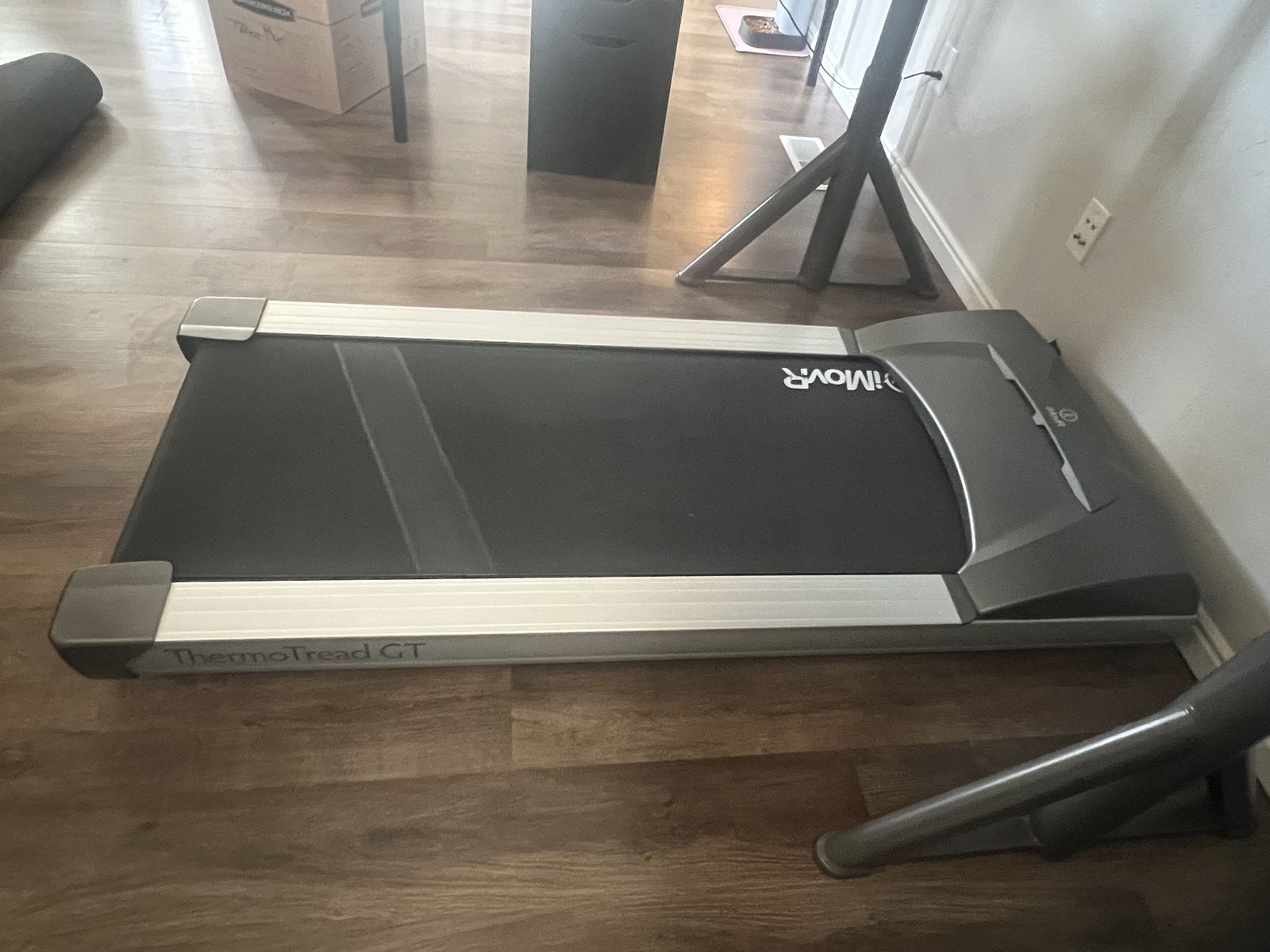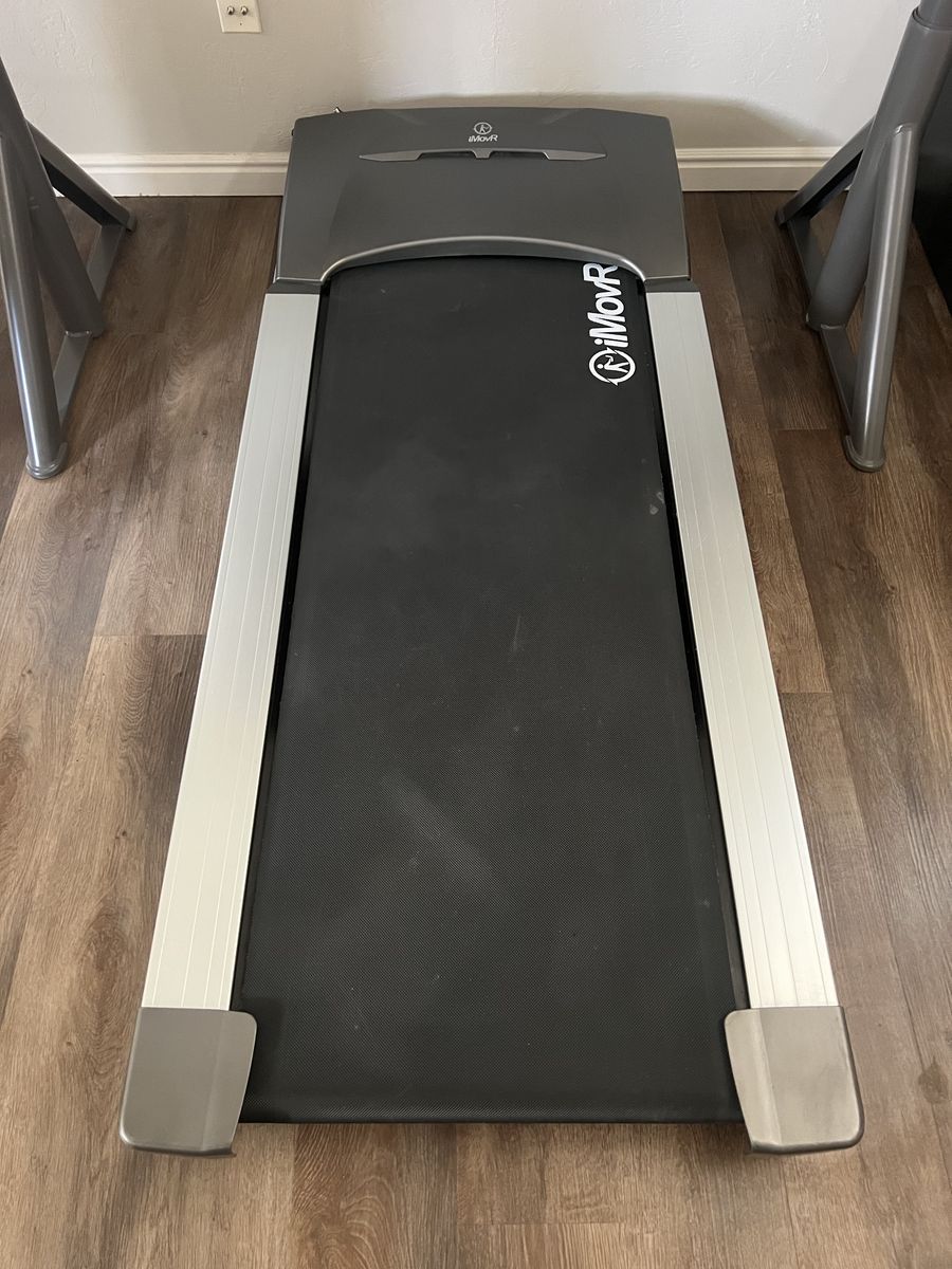 iMovR desk Treadmill about 6 years old, excellent condition, works perfectly. Speed from 1-2.5 mph. Counts steps, standing, or sitting time for up to 2 users. Heavy duty, gym quality. Weighs approximately 150 lbs.