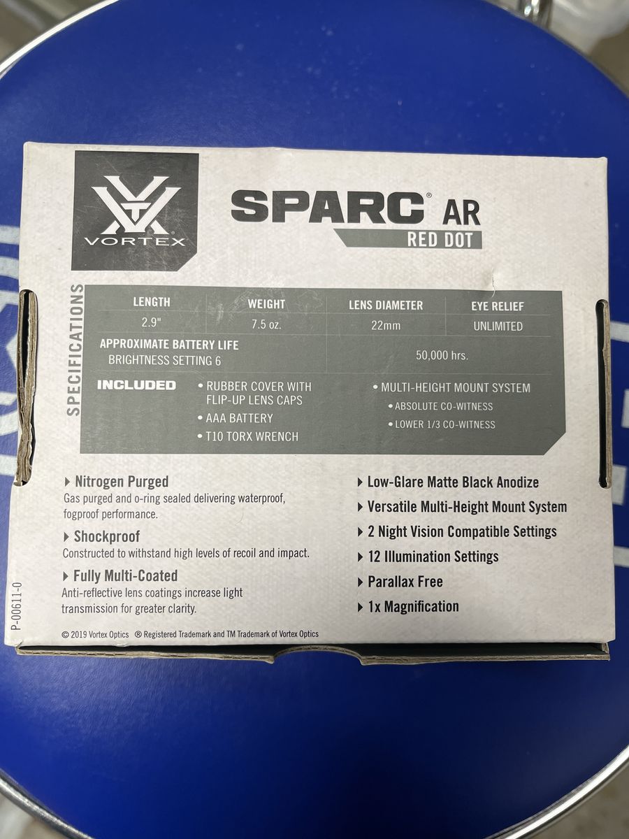 Vortex Spark AR red dot. As new condition. 1 power magnification so it would be great on a Muzzle loader. Comes with and a wrench to mount it. And a good battery (AAA). Same thing on eBay for $90. Here it’s only $60-10%=$54.00. I will ship for postage costs. Please see my other ads. Thanks, Joe.
