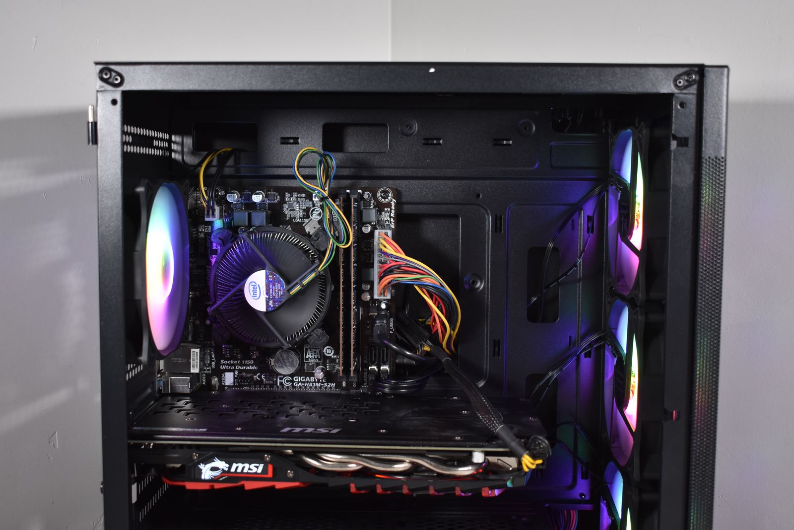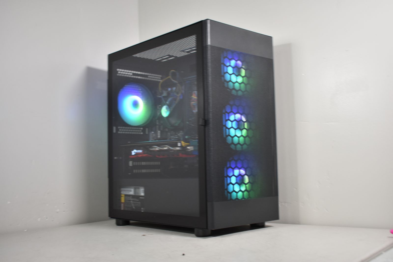 Case: Sama ARGB Tempered Glass Case! This case comes with 4x ARGB Fans. All ARGB is synced and controlled with a button on the top of the case with many many different lighting modes!