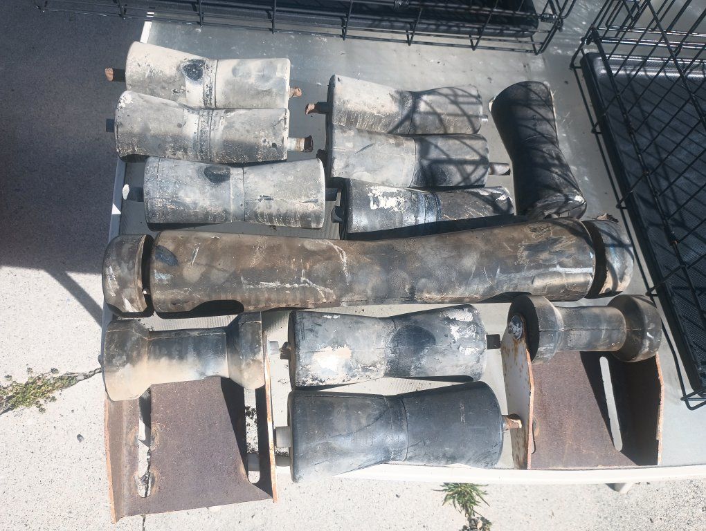 rubber boat trailer rollers, pins included. 9-7 1/2" 2-5 1/4 with metal mount. 1- 21 1/2" $50 for all of them, cash only, will not reply to scams.