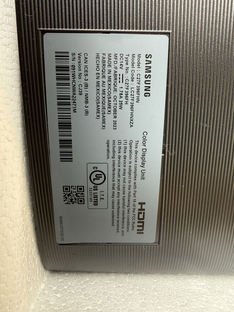 VenmoAlmost new Samsung curved monitor CF396 Model number: C27F396FHN