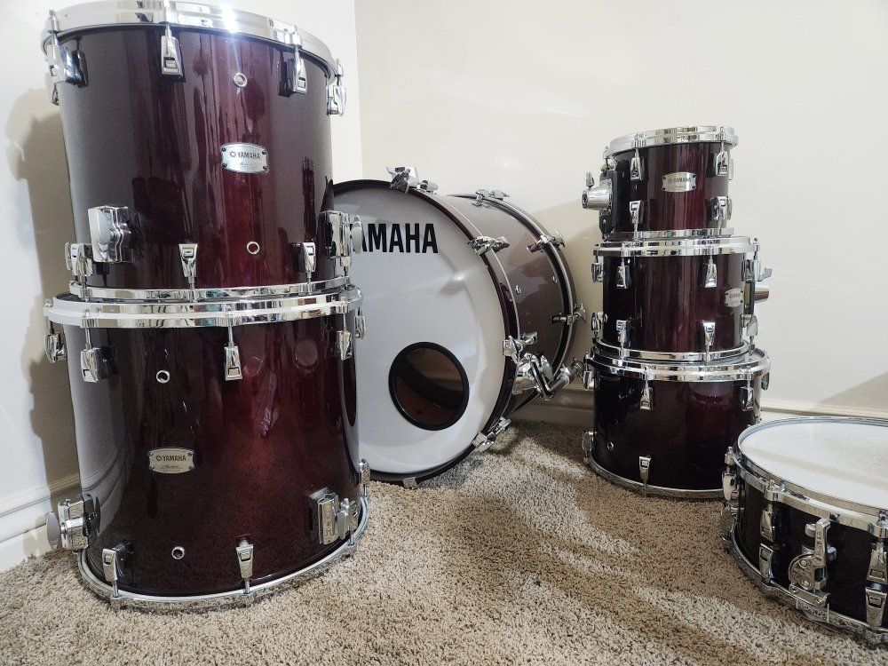 ZelleThis is a Yamaha Absolute Hybrid Maple 7 piece shell kit. Sizes are 8, 10, 12, 14, and 16 along with a 14 inch snare and 22 inch kick. This is the best sounding kit that Ive ever played. Im selling them because Im moving over to a more compact kit. I can do venmo, PayPal, cash app, zelle, and cash. please message me with any questions. Thanks.