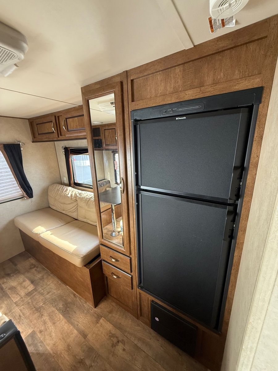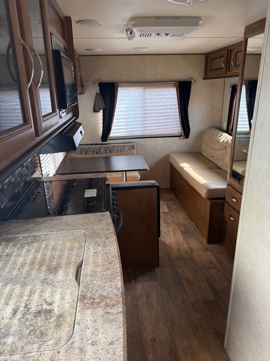 • Model: T191RDXL Wildwood• Year: 2016• Lightweight travel trailer – easy to tow • Comfortable sleeping space • Rear bathroom layout • Full kitchen with stove, microwave, and refrigerator • Dinette that converts to additional sleeping space • Furnace & A/C for all-season comfort • Power hookups and water system • Plenty of storage for camping gear