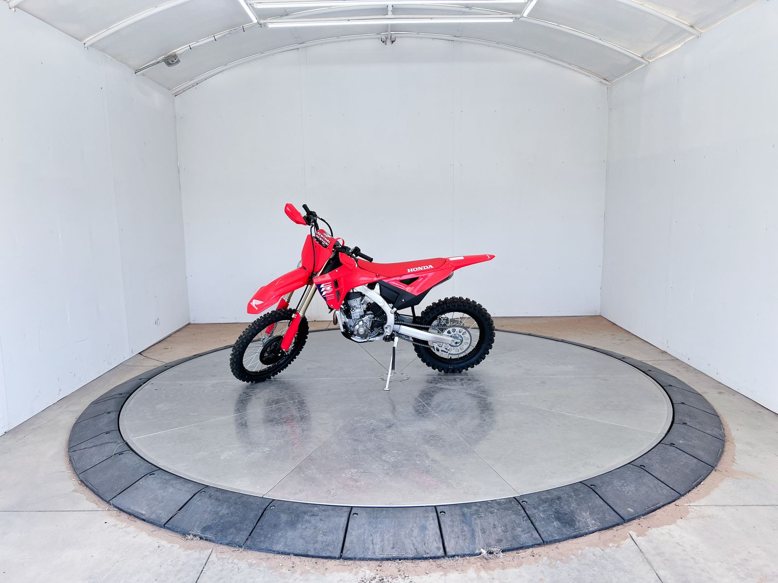 Grip and handling are dialed in with Dunlop Geomax AT81 enduro tires, engineered to bite into unpredictable terrain and maintain stability at speed. Narrow seat design and slim bodywork give you the freedom to move, adjust, and stay in control, while the stacked CRF logo styling reminds everyone this machine is built for racing heritage.