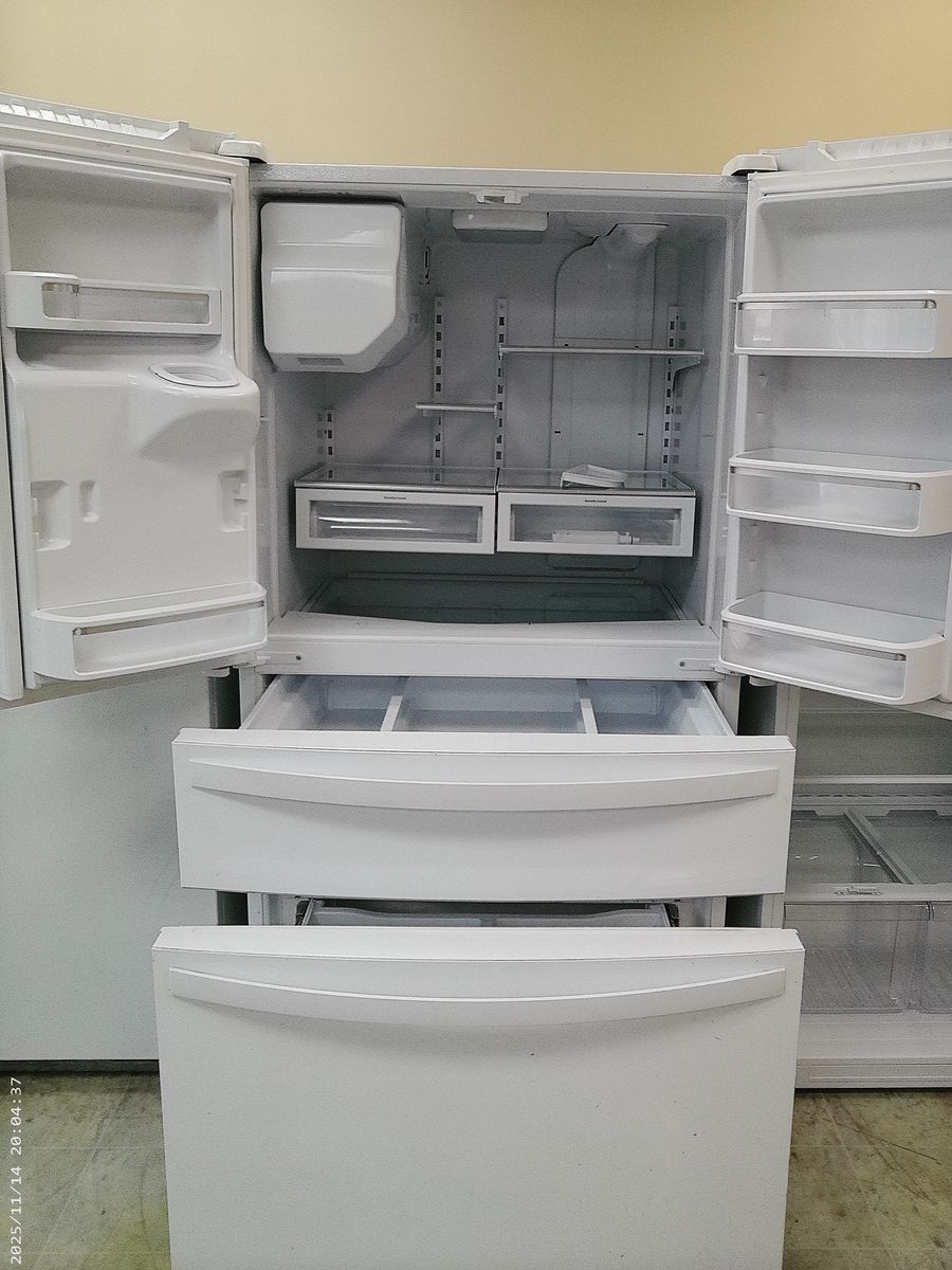 Whirlpool 25 cubic footFrench Door refrigerator in excellent working condition. Tested, cleaned, ready to go. Water and Ice dispensers.