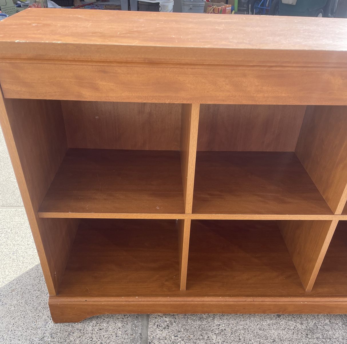 VenmoThis is a super cute storage unit. It does have a few scratches (as seen in the picture). Really a great piece of furniture. Height: 30 inches Depth: 15 inches Length: 46.5 inches