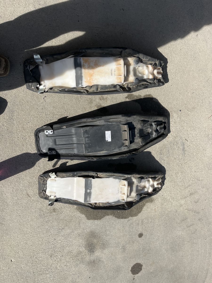 • One seat with ribbed gripper cover (good shape) • One seat with SDG style cover (more worn but usable) • One OEM style black seat in decent condition