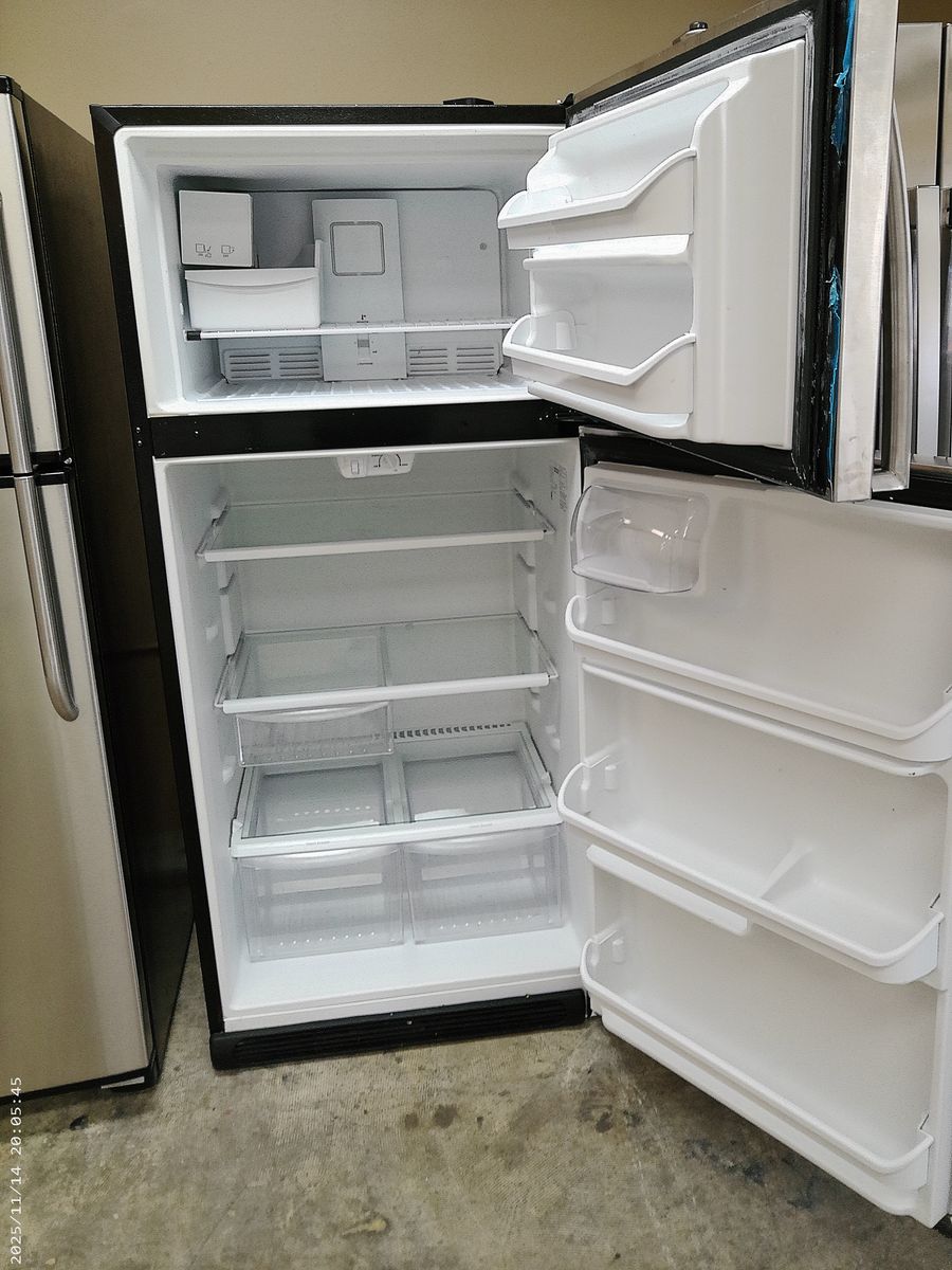 Frigidaire 18 cubic foot refrigerator in excellent working condition. Tested, cleaned, ready to go. Ice maker has not been tested, can be removed.