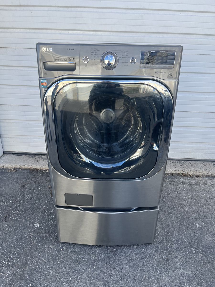 Hello I have for sale a nice and clean LG MEGA CAPACITY WASHER on a pedestal for sale this unit is in good condition and it works great with no problems pedestal is included on the price if you have any questions feel free to call or txt ( 801)695-0314 I can deliver for free on the SLC area,thanks for looking.