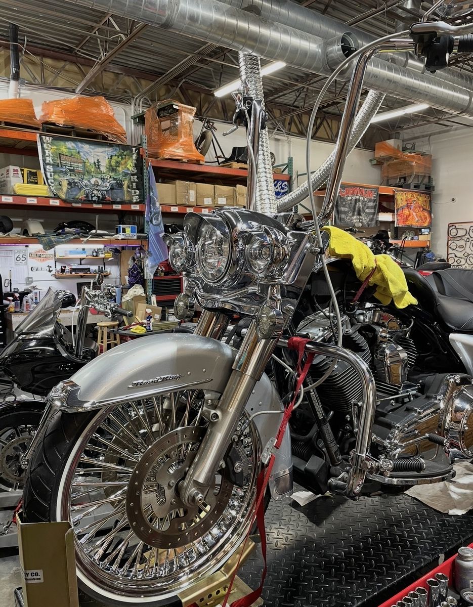 -21 inch spoke front wheel -Carlini ape hangers -LED's front n back -stretched bags -fish tail mufflers -air ride back wheel -center stand -intake -train horn