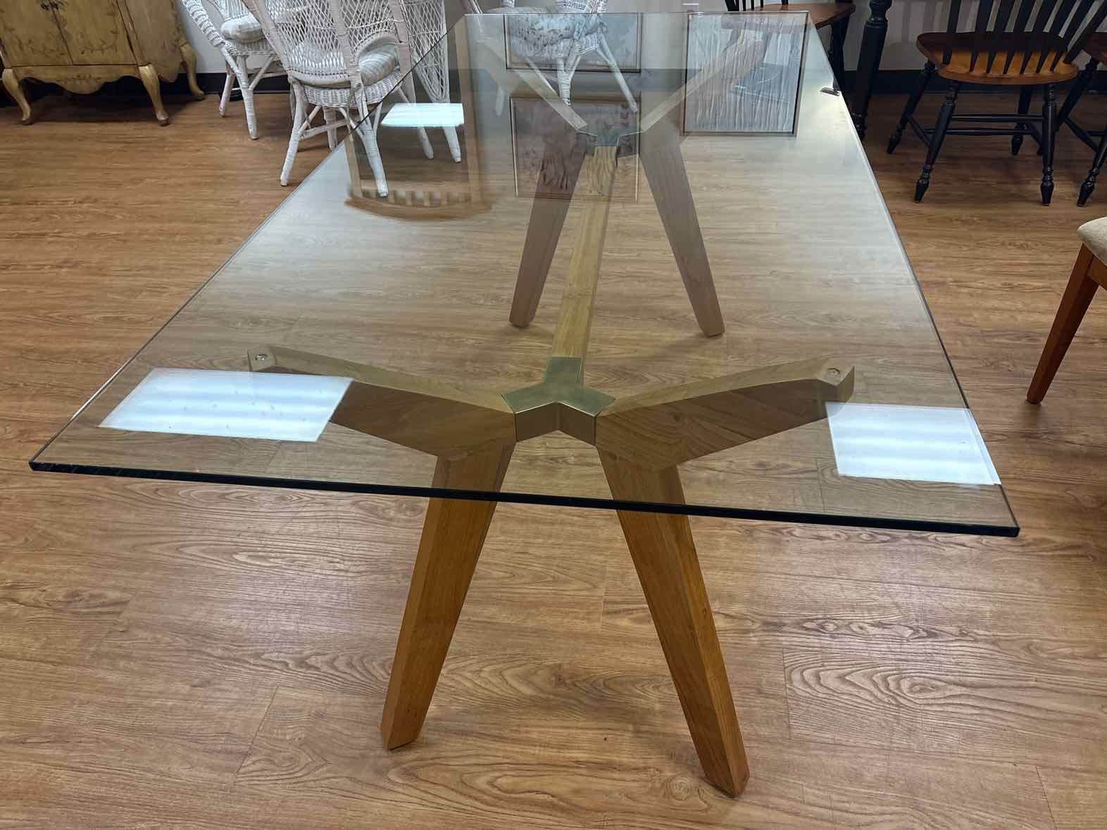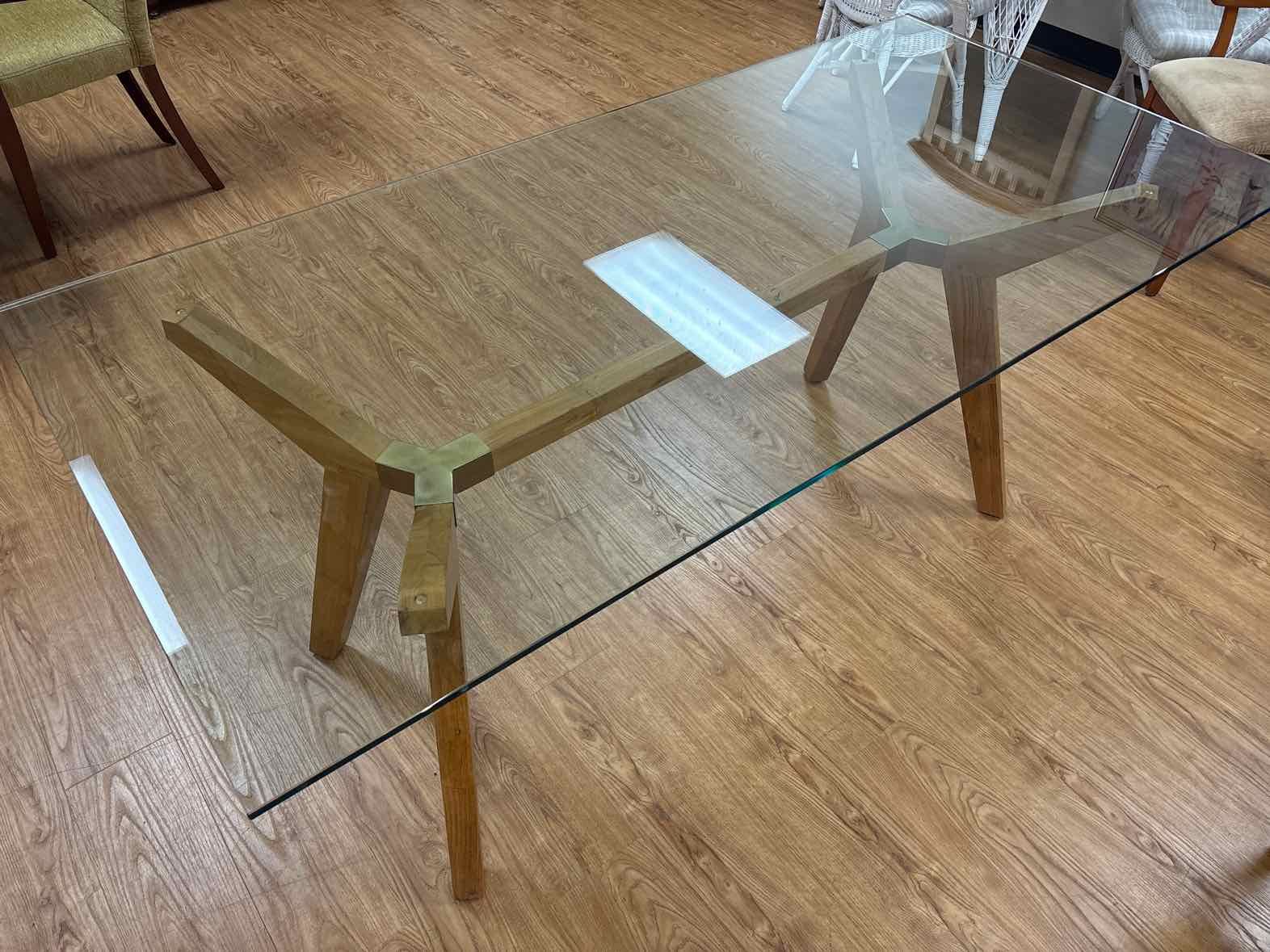 Venmo'Strut' reclaimed teak glass top 70" table with matte lacquer finish. Used as a desk for 6 months then put into storage. Looks brand new. Glass top is thick and heavy. Originally bought for $750, no longer available. Pick up in person downtown SLC.