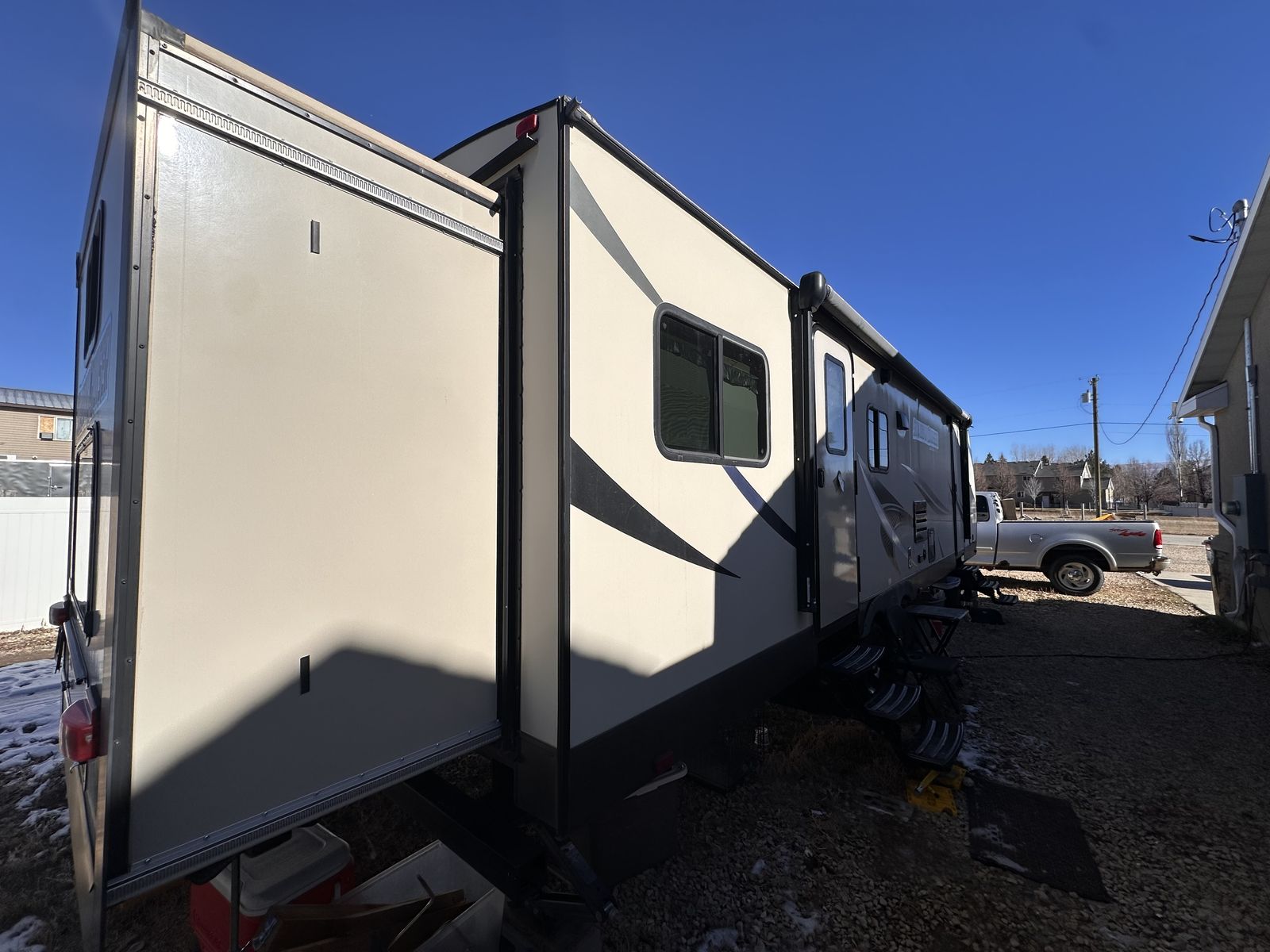 We’ve had this amazing trailer for over 2 years now but don’t use it enough to keep it and we are trying to get out of debt. We’ve got a brand new main entrance door that costs us over 2k. Very well maintained and has brand new AC filters, tires were just checked and aired up. It is completely ready to go!