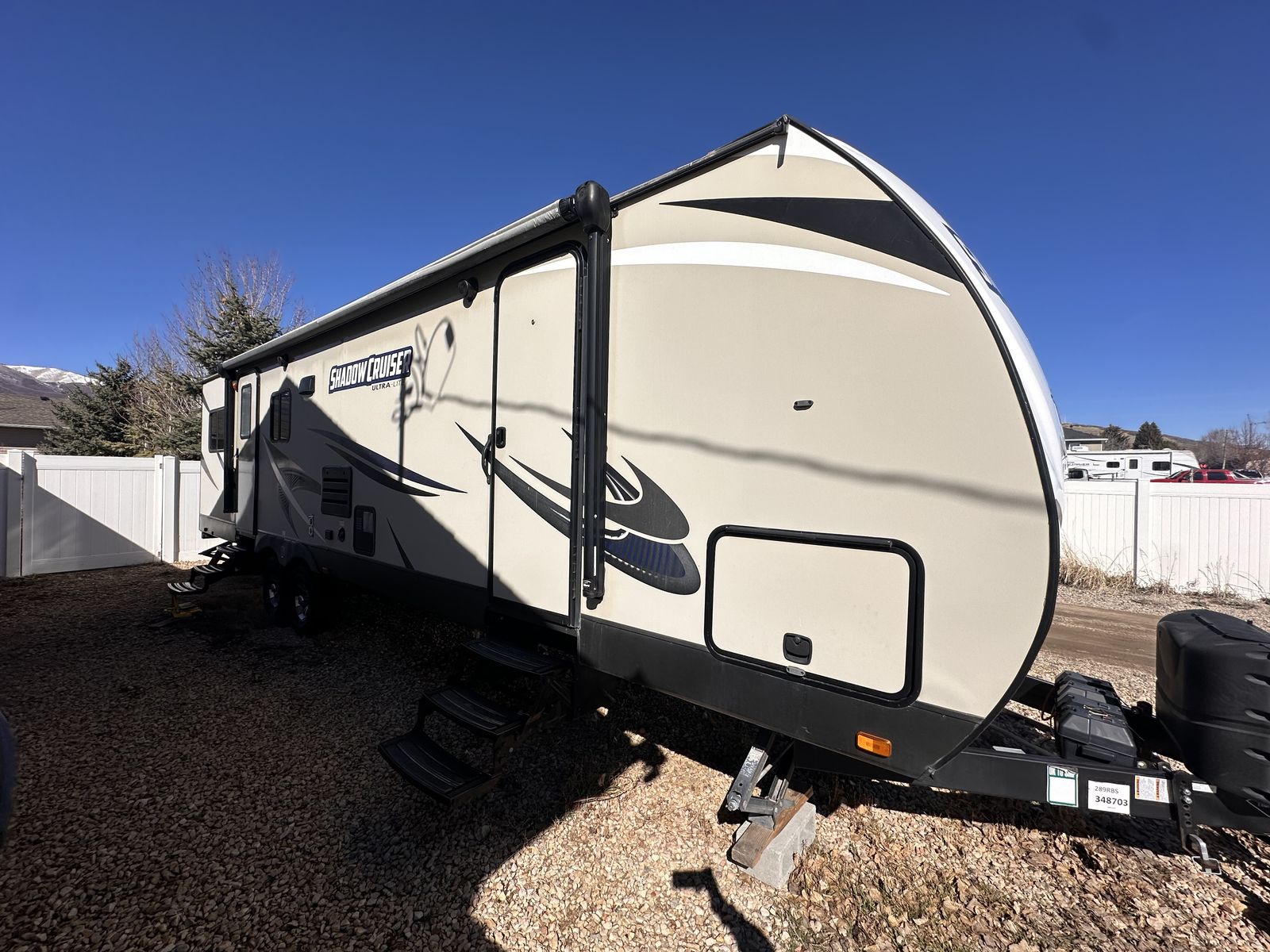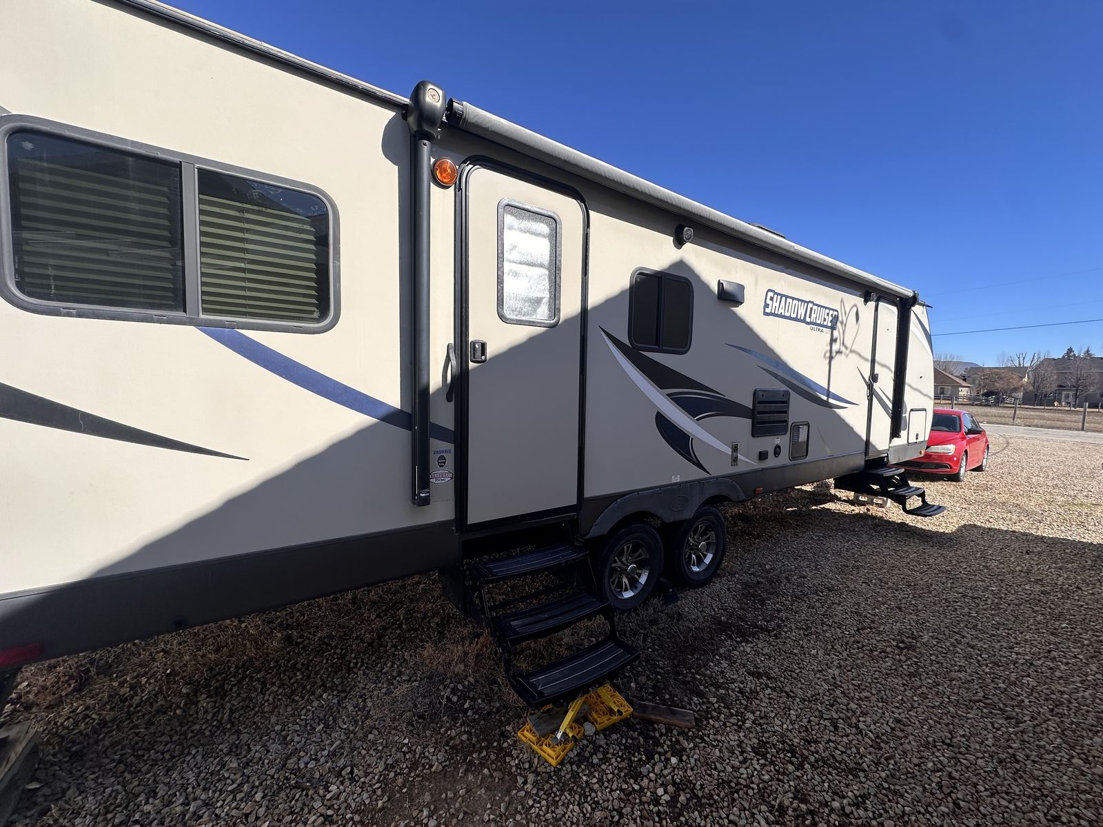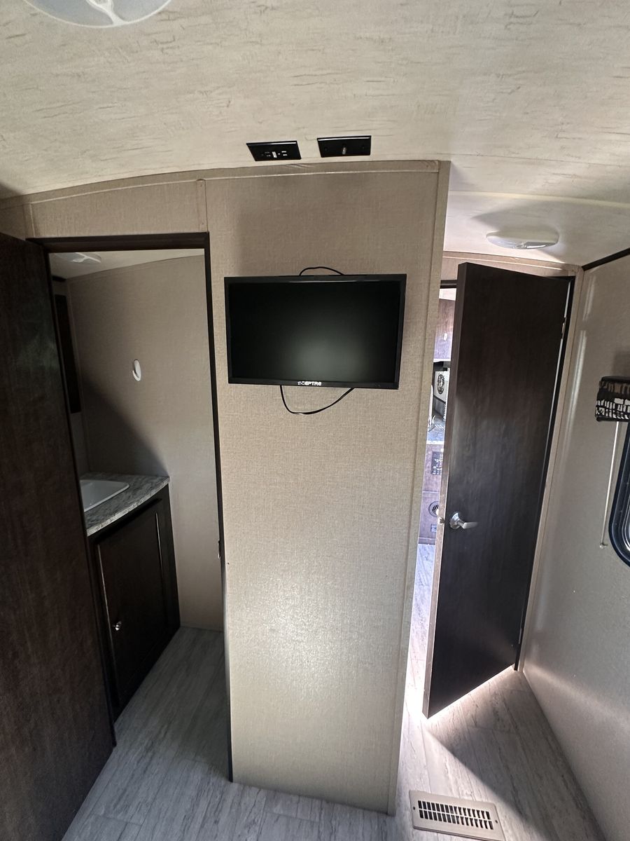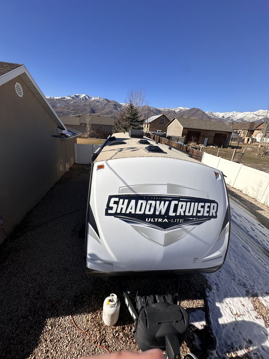 Shadow cruiser 2018 by Cruiser RVs Model : 289 RBS I believe it’s about 30ft long? Comes with 2 bed rooms and 1.5 bathrooms (large shower)! Sleeps 7 people Queen size bed and bunk beds along with pull out couch and table that changes into bed 2 slide outs thar make a spacious area 2 TVs Winterized Tons of storage under the trailer and inside Great condition and well maintained (brand new door, AC filters, etc) Full propane tanks/heating Large sink and fridge Nice Large awning for the summer Easy to use and understand Comes with solar panels for off grid camping