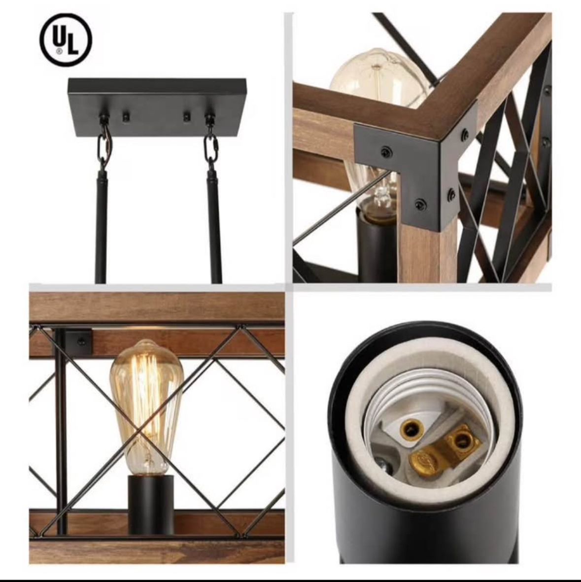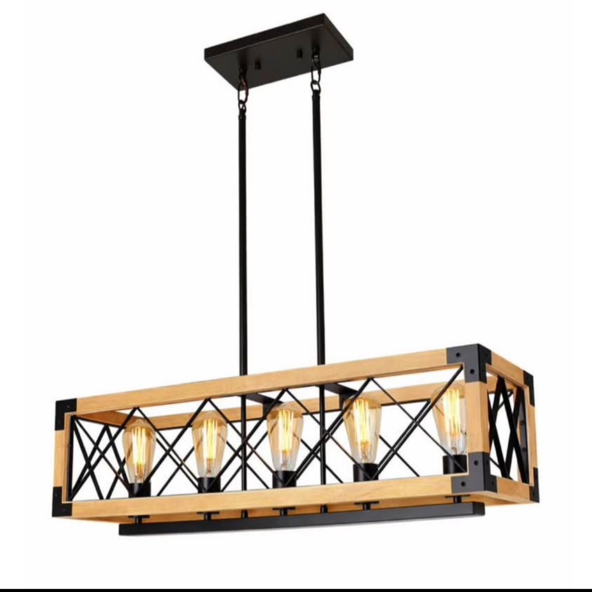 VenmoNEW IN BOX! NEW Rectangle Wood Chandelier Farmhouse Style Dining Room Kitchen Lighting Fixtures, LIGHT WOOD