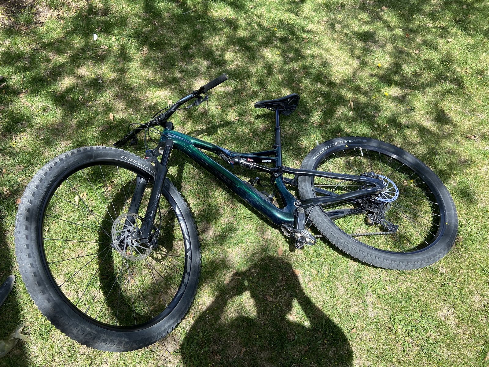 VenmoAwesome bike in great condition. Carbon Fiber frame with a storage in it. Frame size medium. Tires are 29”. It shifts great and breaks work great. Has a dropper post on the seat. It works but it isn’t perfect can get stuck on its way up sometimes. I think it just needs a little air. Has full suspension the shocks need a little air as well but I don’t have a shock pump. Has Shimano clipless pedals on it and five ten shoes that go with it. I love this bike and have had tons of fun on it unfortunately it’s just to small for me now.