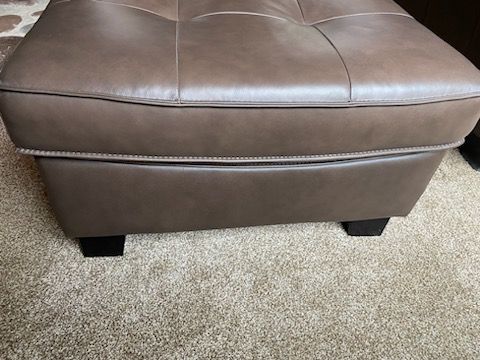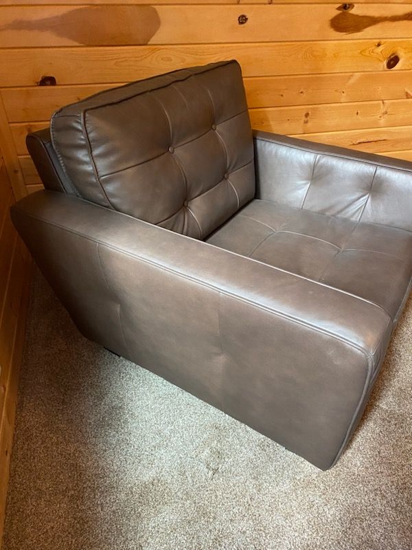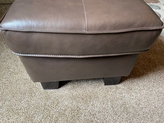 Made by Chateau D'Ax LTD USA. Purchased from RC Willey as set with other pieces but too much for my space. In perfect condition, never used, has been stored in guest room. Chair 36"D x 38"W x 33"H, ottoman 30"W x 22"D x 17"H. Cash only.