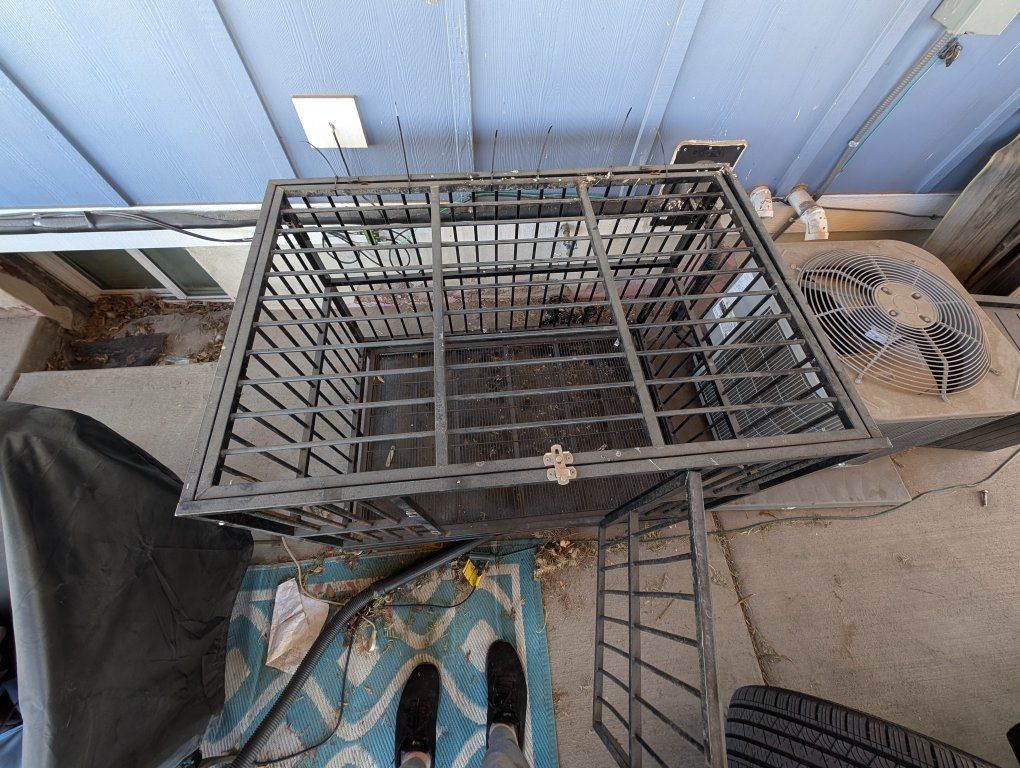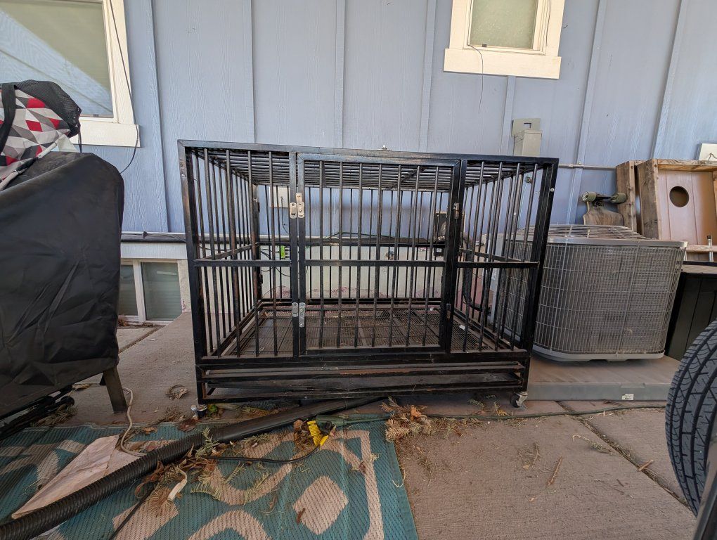 GooglePayI am selling my old dog crate. We bought a dog run and no longer use it. It is extra strong and big for large dogs. The top gate hing is broken and won't open but the front gate does. 36in tall x 48 in wide x 32 in deep