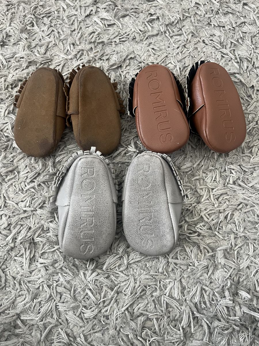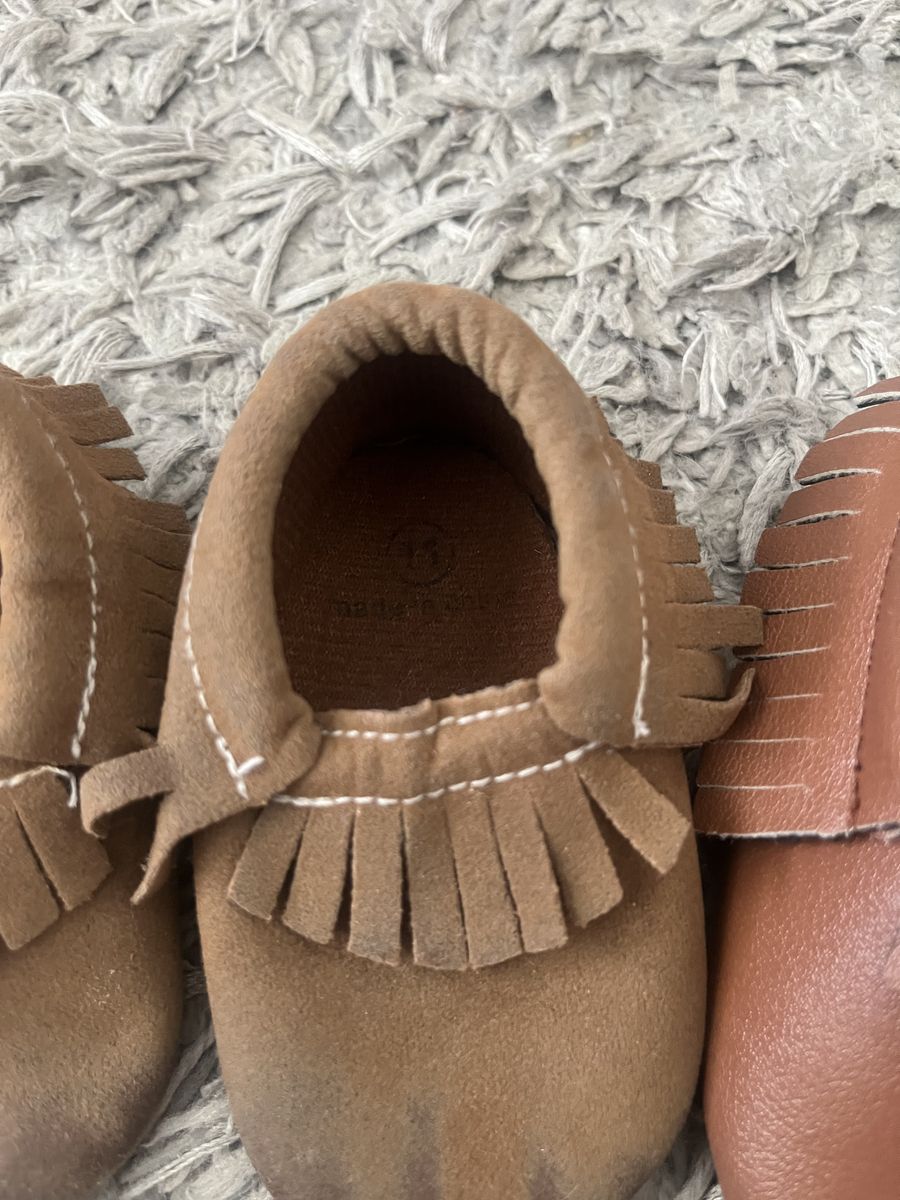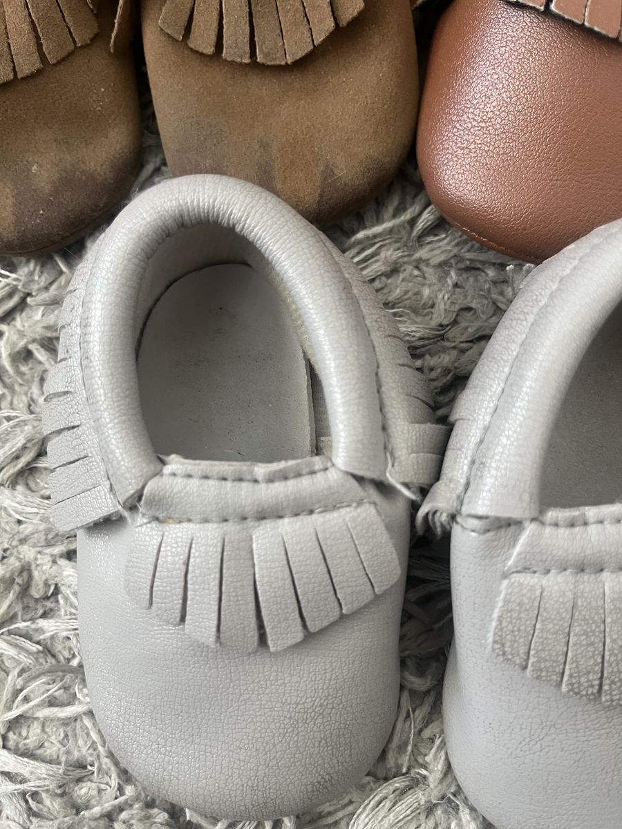 VenmoThe cutest baby moccasins. Different sizes, 11 (top left brown), and size 1 for the other two pairs. The top left and bottom were worn by walking babies. Age ranges might be from 6m-12m based on their overall size. $3 each or $8 for all 3 pairs.