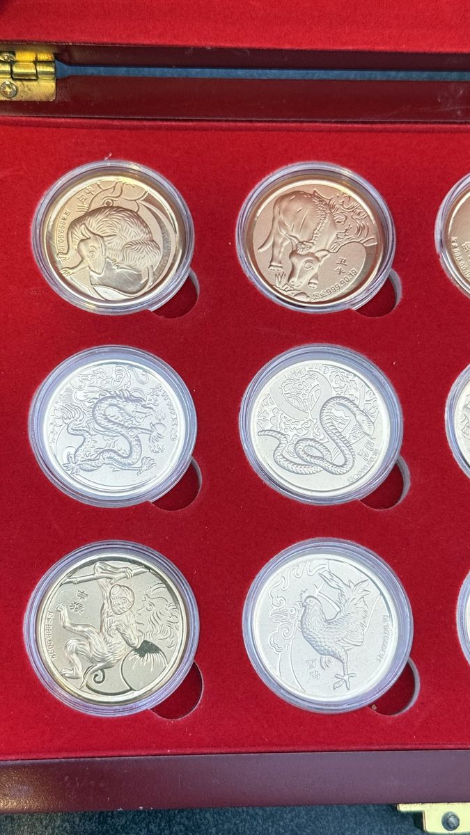 VenmoBeautiful display case of all 12 Chinese Zodiac Signs. Each one a wafer coin weighing 0.1 grams of gold. In total 1.2 grams of gold plus the amazing art work in the collection. Asking $300 for the set. I will not break up the set to sell individually. Raw gold value alone worth over $200. Great way to have a collectible that has more than intrinsic value. Willing to help with delivery.