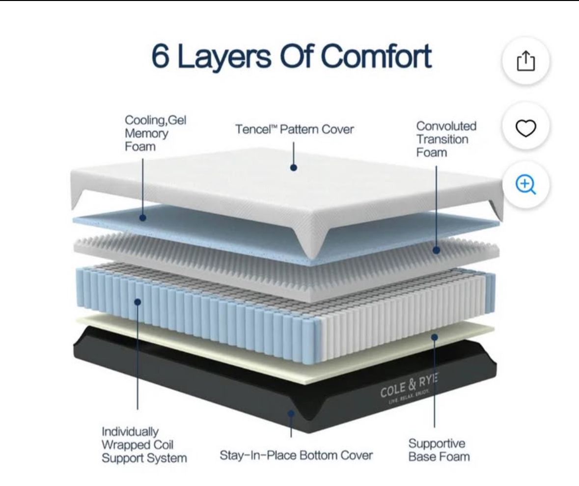VenmoNEW in Plastic! King 14” Medium Plush Cooling Gel Memory Foam Hybrid Mattress!