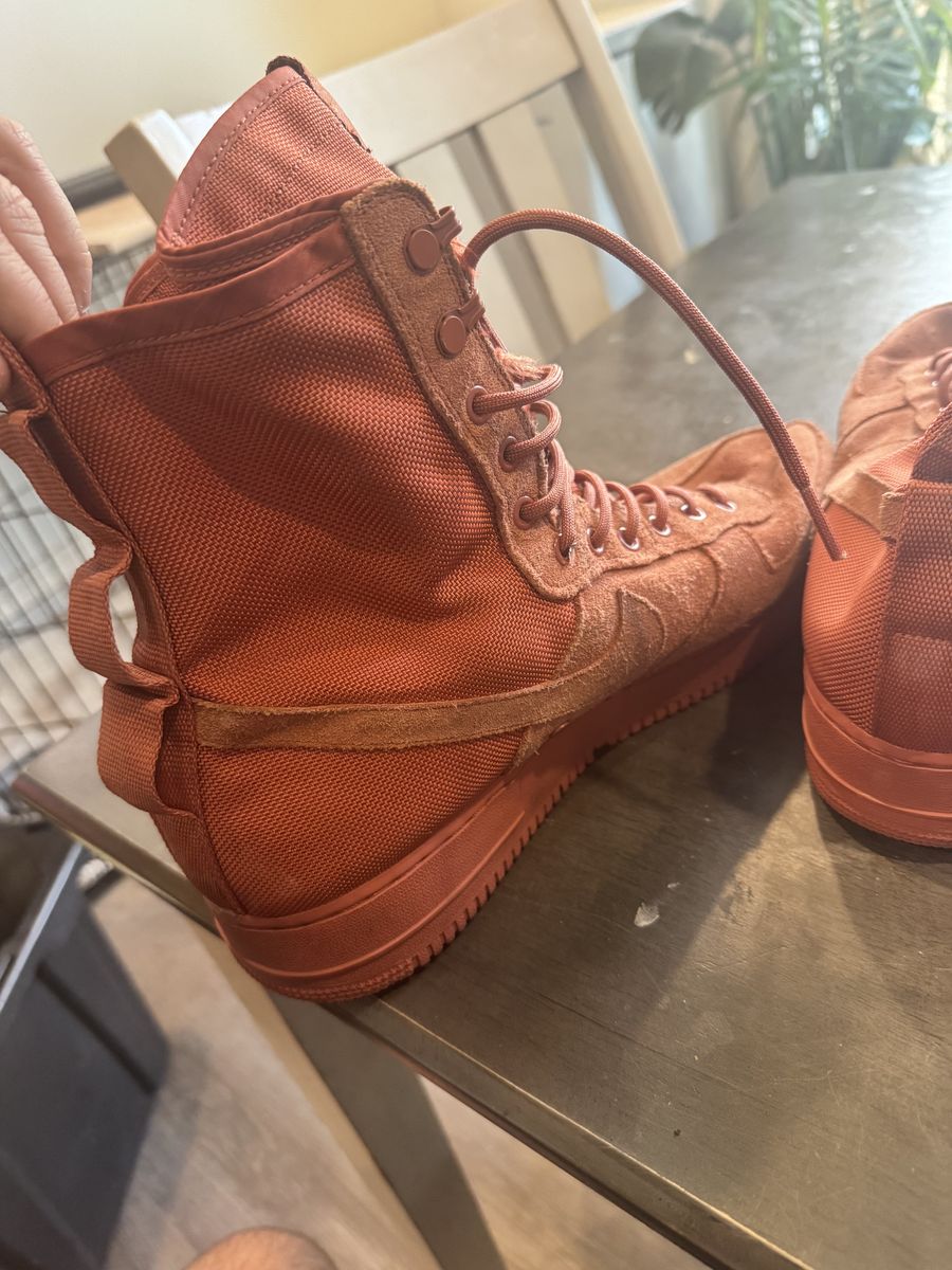 VenmoDusty peach Nike sf Air Force 1 size 14 in good shape minimal wear but does have some stuff in the bottoms can’t see it when worn though