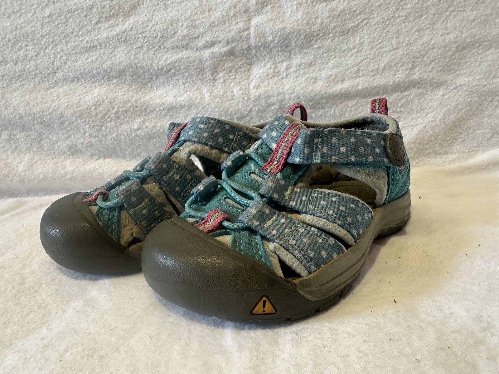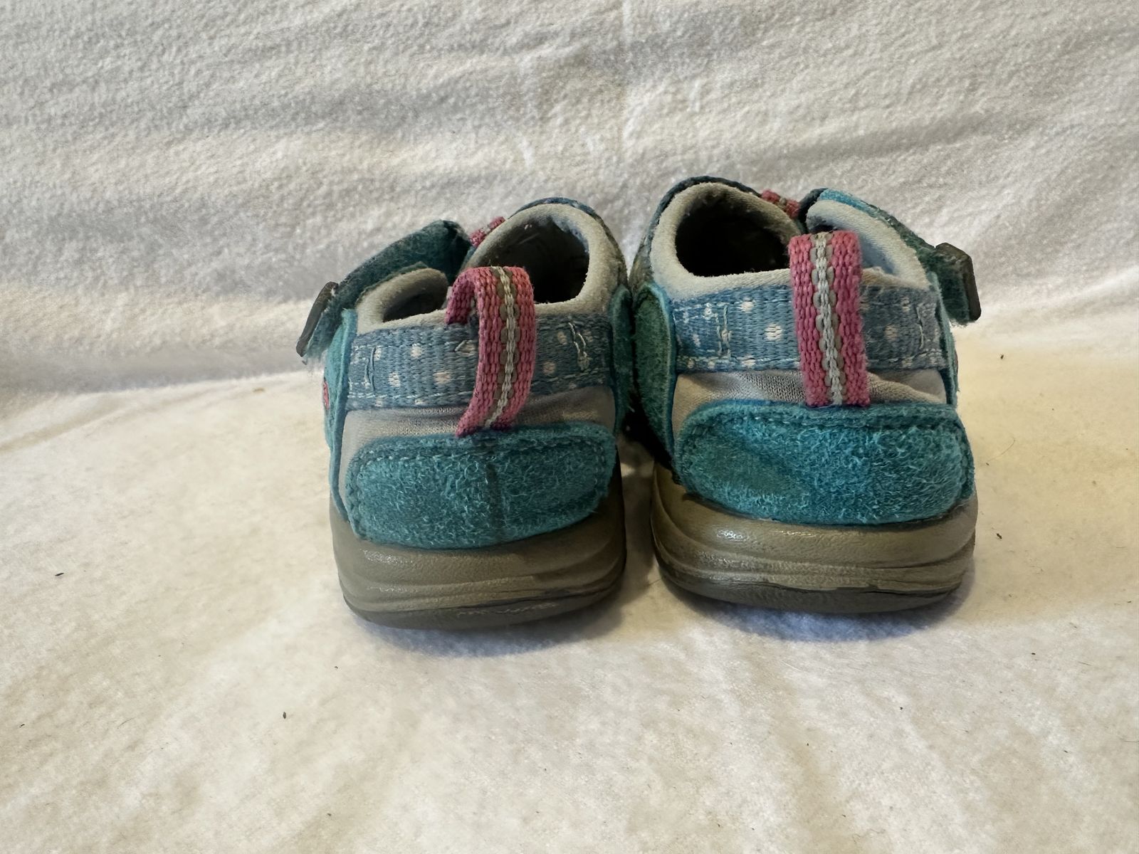 Keen toddler, size 7 beach blue with white dots and hot pink trim, hiking sandals. These are in good condition, see photos for details. I take cash or Venmo, but cash is preferred. Text is best. 8012014446. Check out my other ads for additional sizes and styles.