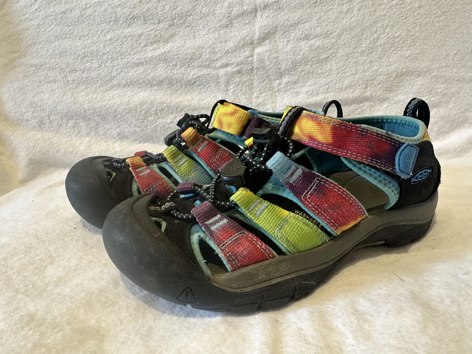 Keen youth size 1 rainbow, washable, hiking sandals. These are in good condition, see photos for details. I take cash or Venmo, but cash is preferred. Text is best. 801-201-4446. Check out my other ads for additional sizes and styles.