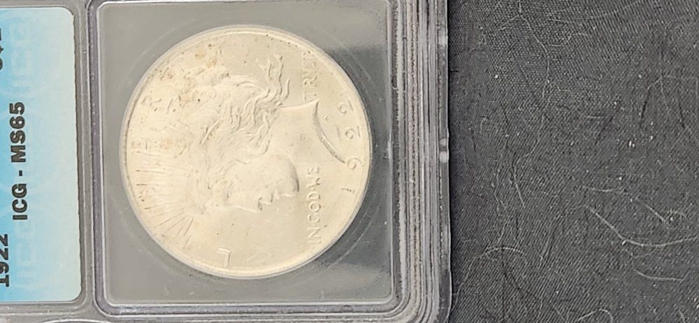 Silver 1922 Peace Dollar MS65 ICG4621080104. Very nice shiner. Possible strike through reverse on eagle's head, but you decide. PCGS CoinFacts at $170. I'll let it go for $160. KSL Messenger or text 80l64l477l. KSL Messenger is best.