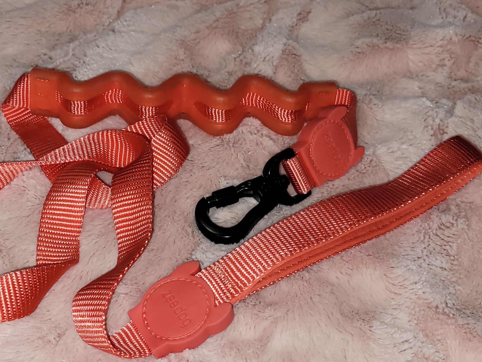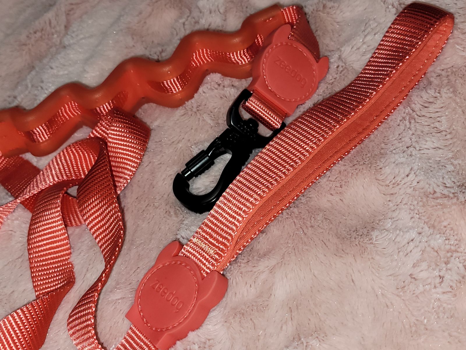 Zee.Dog neon coral Ruff dog leash 2.0. Size small, 4ft length, 0.8" width. Color in neon coral. Shock absorbing co-injected polyurethane spring. Absorbs the intensity of your dog pulling. Super hook swivels 360 degrees and locks when you rotate the screw lock. Soft neoprene padding on the handle for extra comfort. It's in perfect condition. (Cash Only)