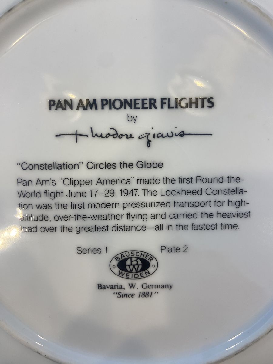 Vintage Pan American World Airways (Pan Am) serving plates from the historic airline. These plates were used for airline service and are now sought-after aviation collectibles.
