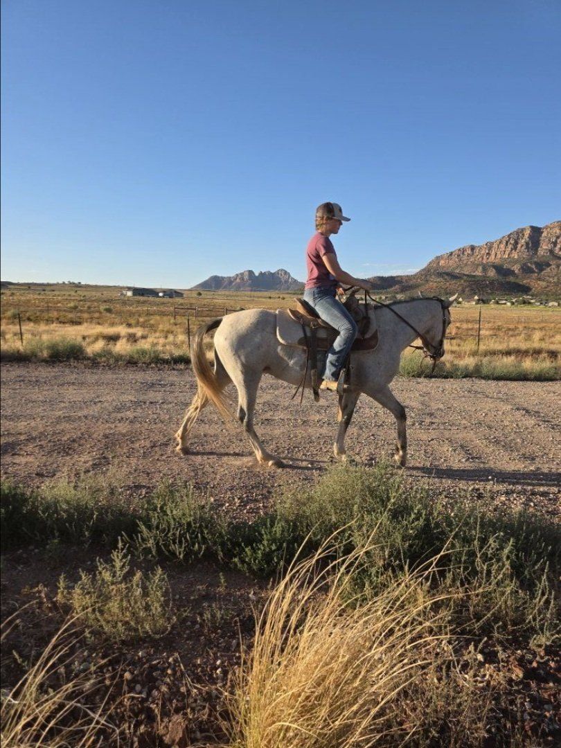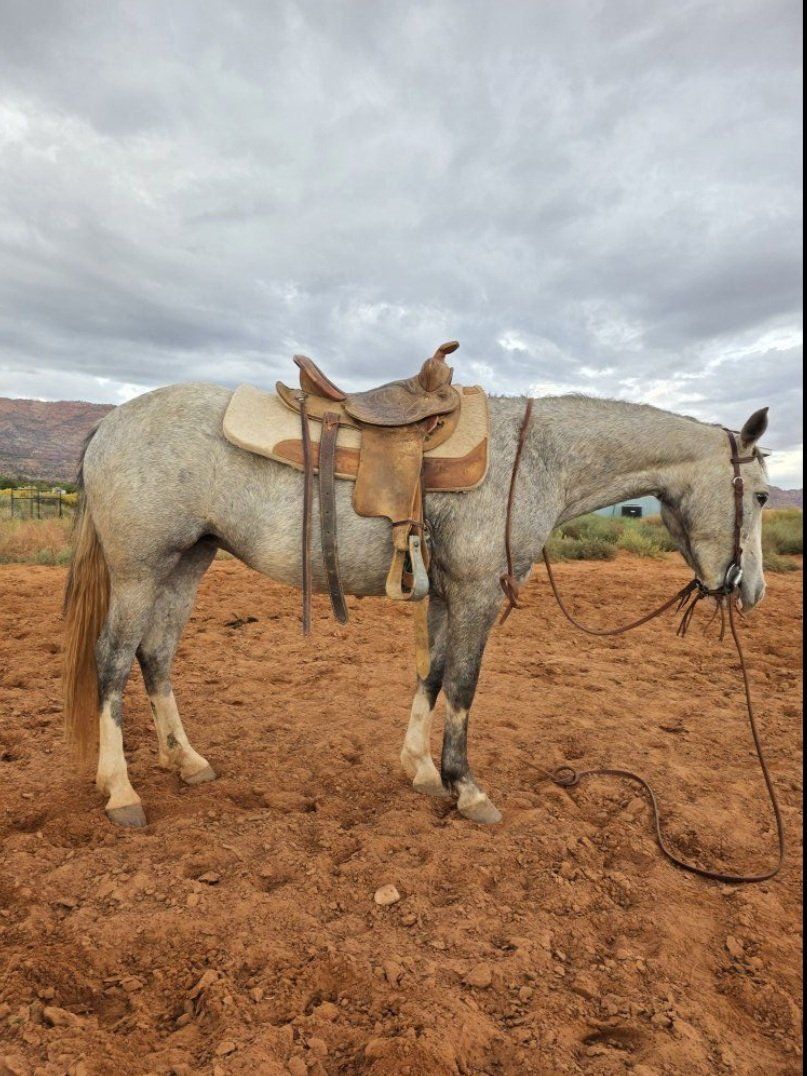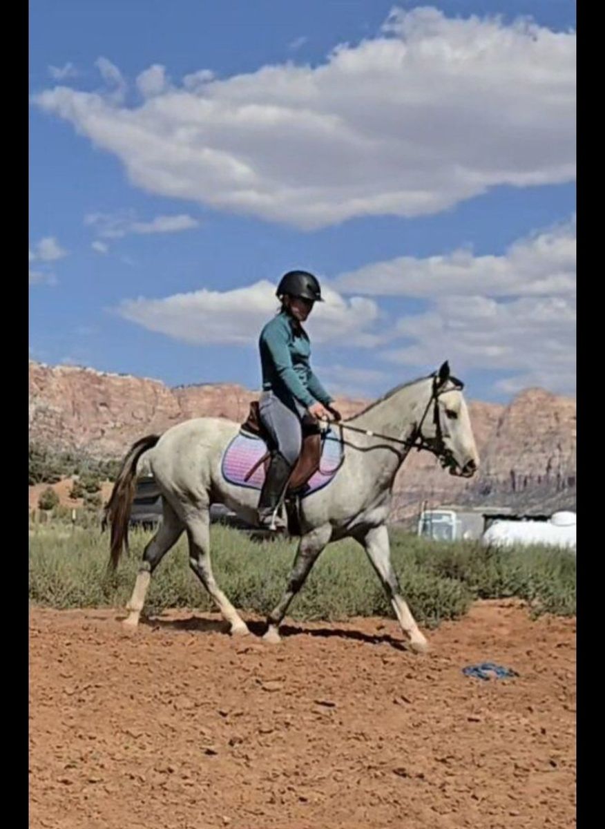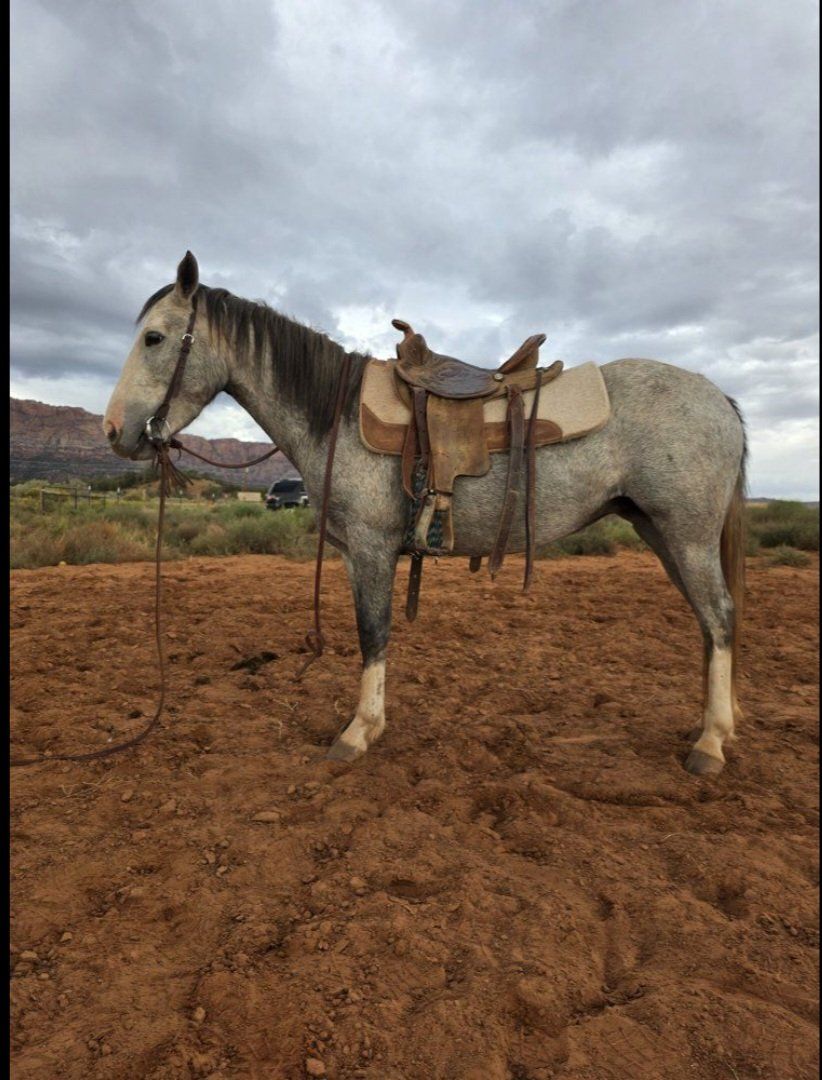 Navy is a 13hh four year old. She is NOT for beginners. She doesn't buck or bite but she is a little spooky. She is more go but will settle. She has been on multiple trailrides and she likes to lead. walk trot loads both directions although her right lead is a little hard to get. I have put a lot of time into her ground manners so she is good to be around. She picks up all four feet and ground ties a little. Good for the farrier. for more videos/information please text 928 403 1259