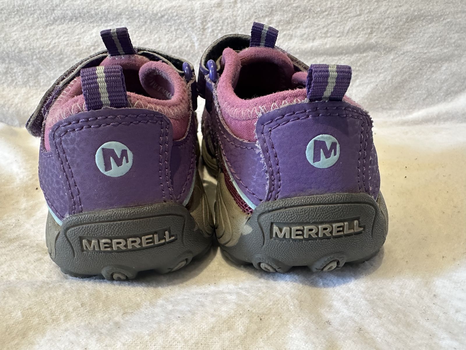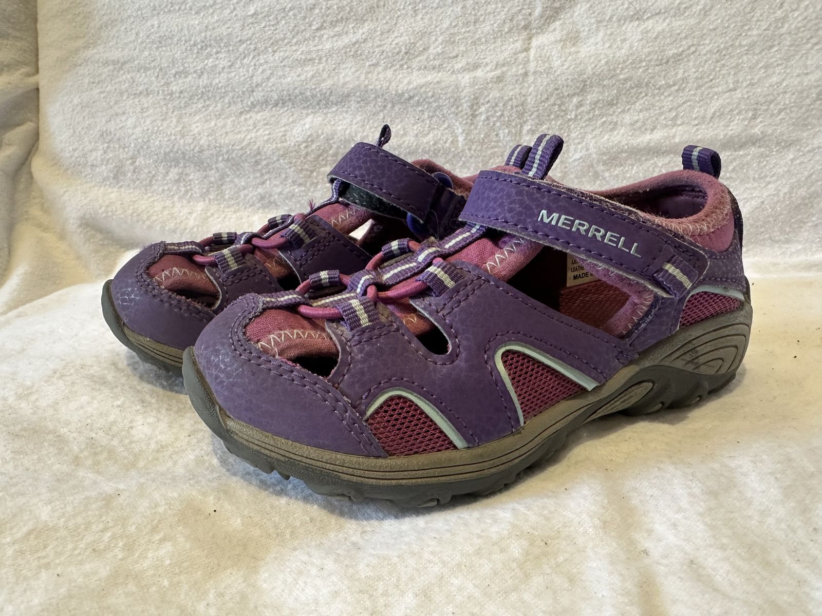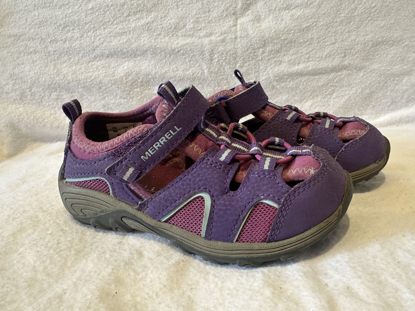 Merrell toddler size 9 purple closed toe, hiking or water sandals. These are an excellent condition, see photos for details. I take cash or Venmo, but cash is preferred. Text is best. 801-201-4446. Check out my other ads for additional sizes and styles.