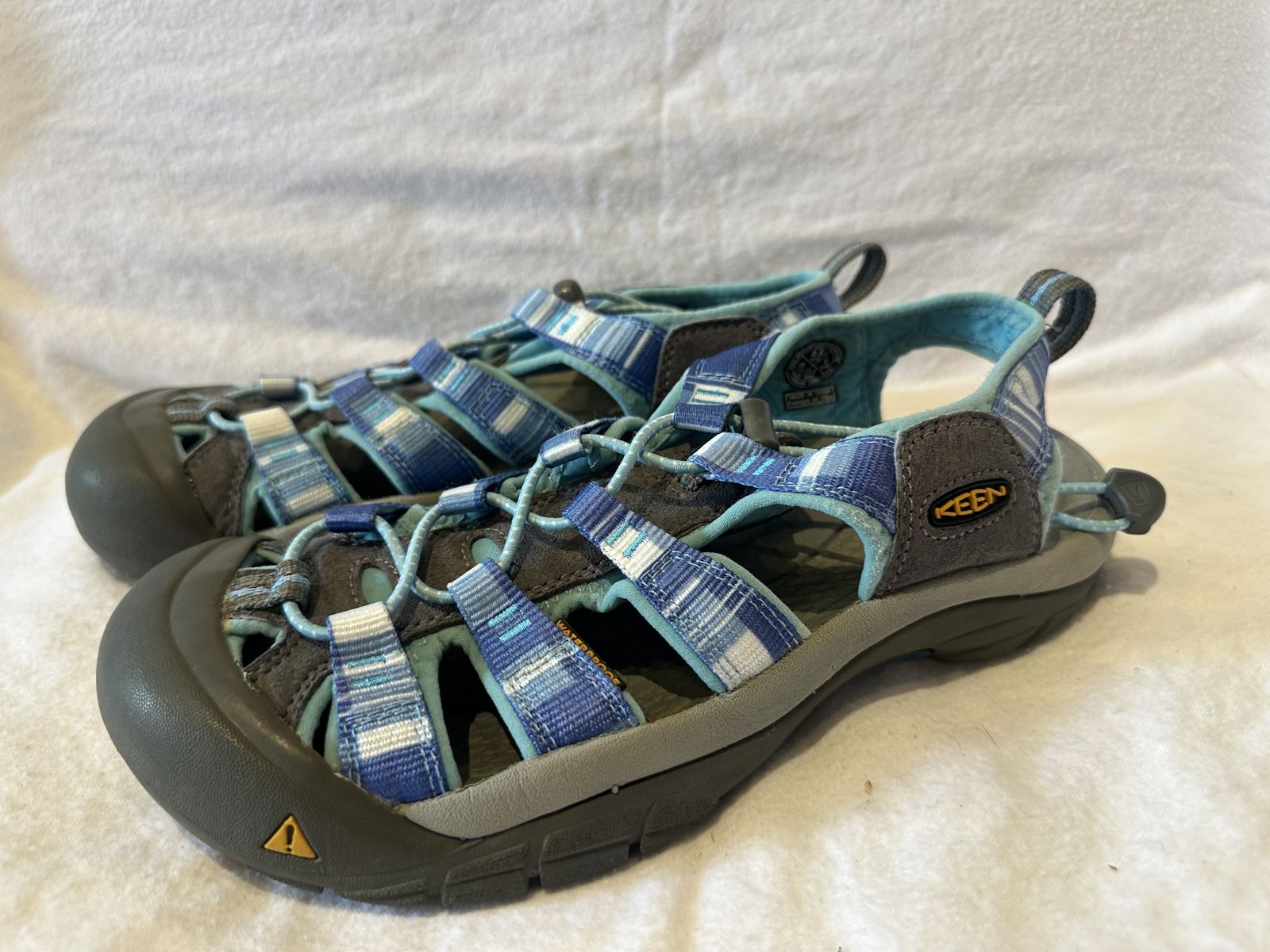 Keen women’s size 8.5 blue/beach blue plaid print waterproof hiking sandals. These are in lightly used condition, see photos for details. I take cash or Venmo, but cash is preferred. Text is best. 801201-4446. Check out my other ads for additional sizes and styles.