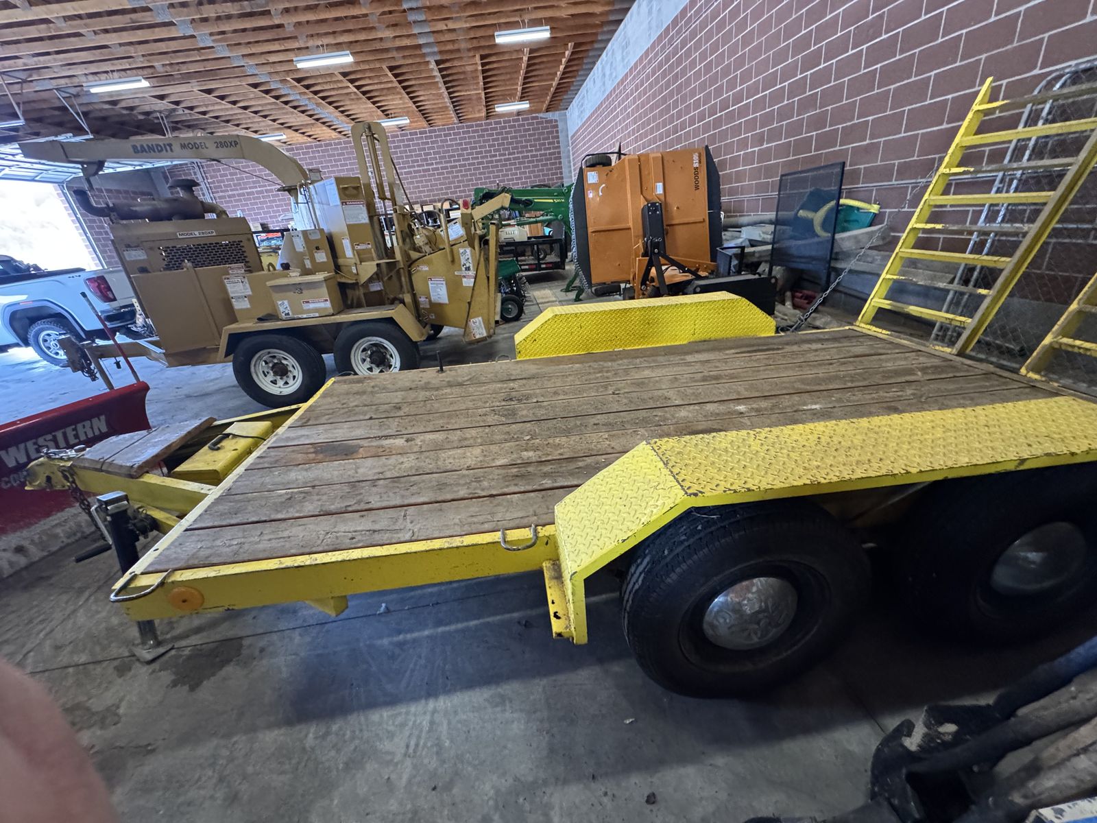 This trailer is owned by Riverdale City. This deck measures 71 1/2” between the fenders 12’ long. Deck seems to be in good shape. It’s dual axle trailer with surge style brakes. Has a 2” hitch. Has some minor rust. Tires have good tread depth but are older. We used it for our old wolfpak roller. If you have any more questions please feel free to call me at 801 394 5541 ext 1218 ask for Abe. We accept cash, check or credit. Check will have to clear before we can release the trailer.
