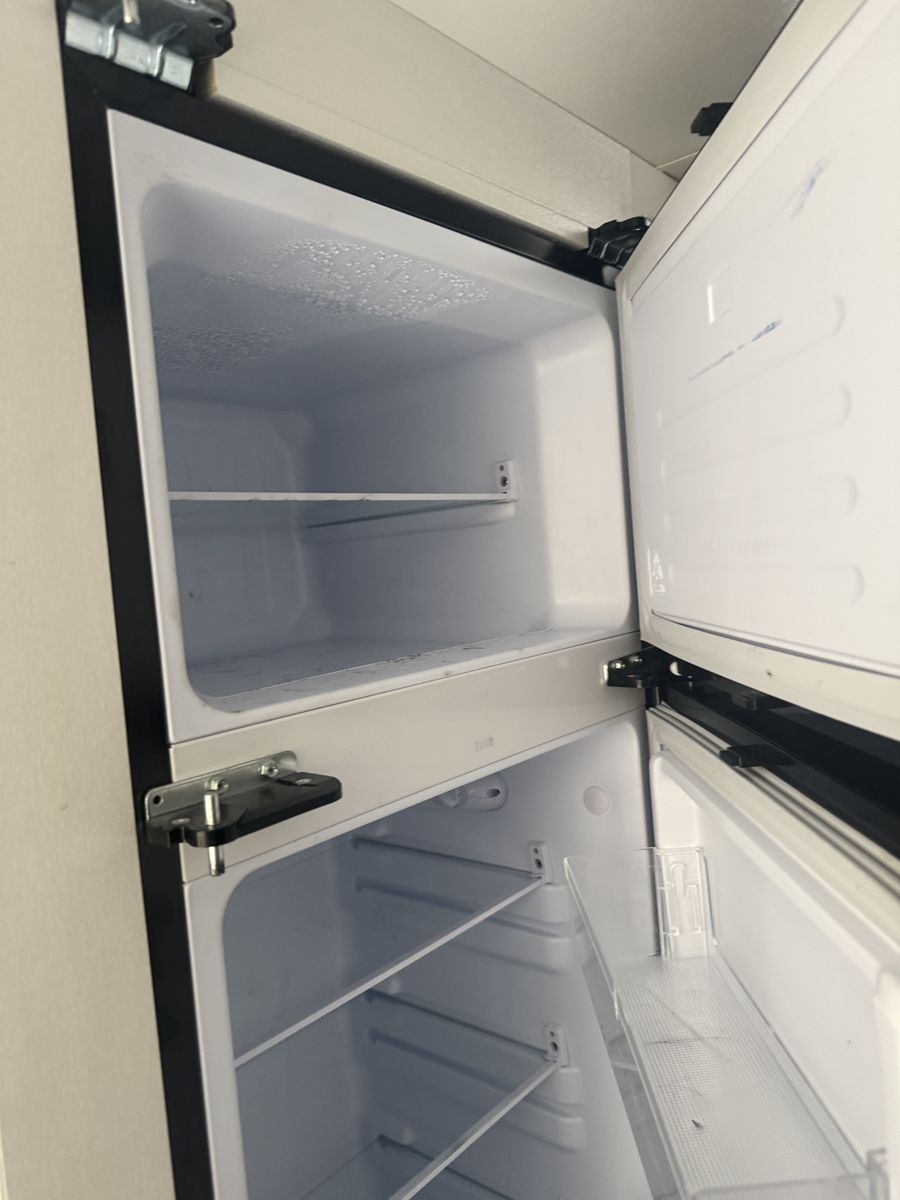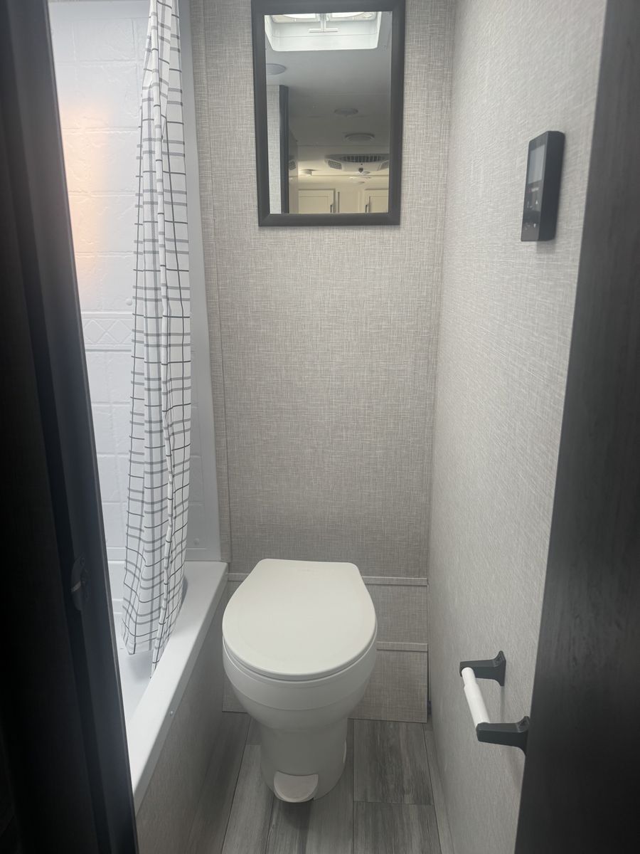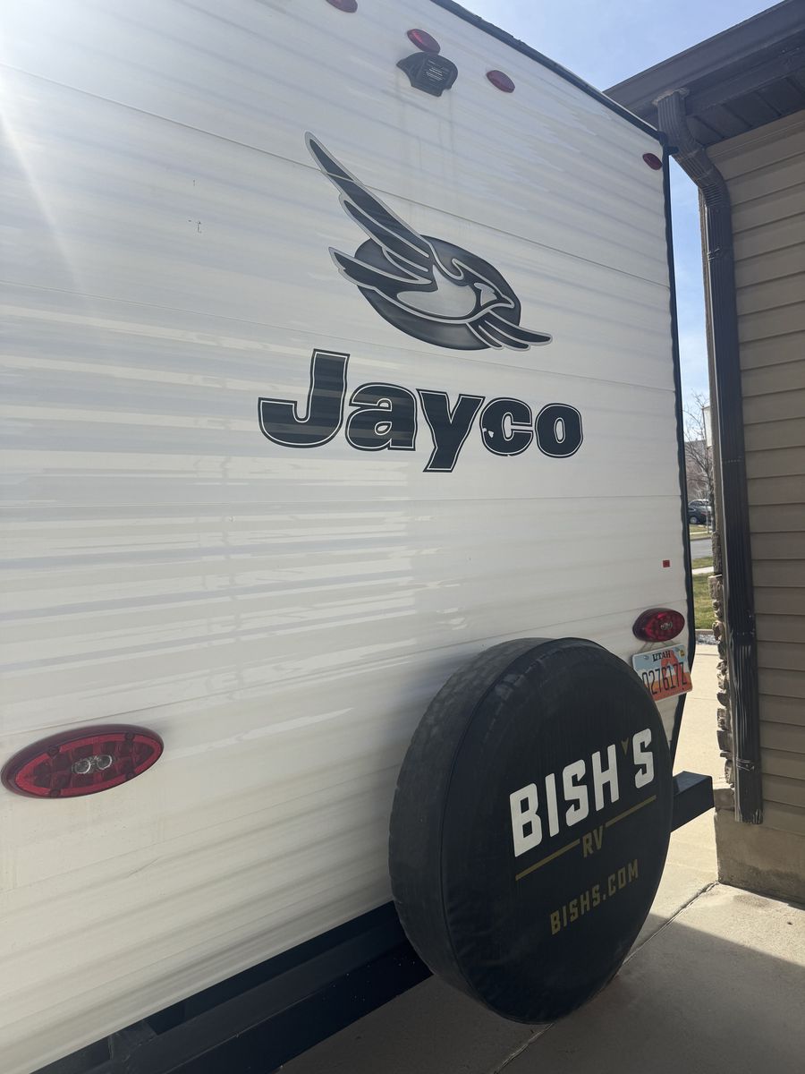 Also includes: Center living room, convertible table to bed, 2 burner stove, patio awning, booth dinette, microwave, oven, tv, front bed queen, rear bath/shower