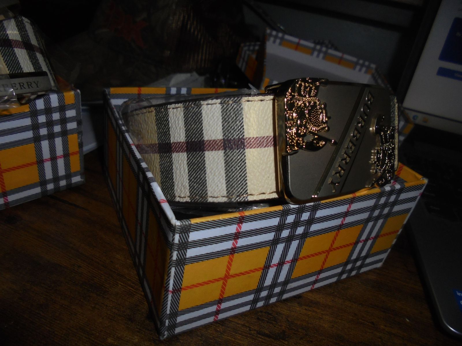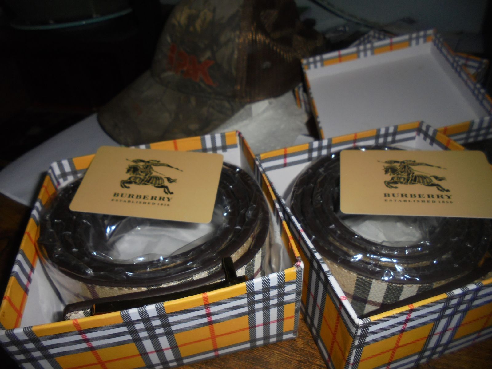 I have Two BurBerry Belts with Buckels, they are New, they both measure from end to end 51 inches, they can be cut down for any length, I purchased these at a estate sale, I have no idea if they are real or reproductions, comes with origional boxes one price for both Located in West Valley Call or Text Vic at 801-915-2295 No Codes