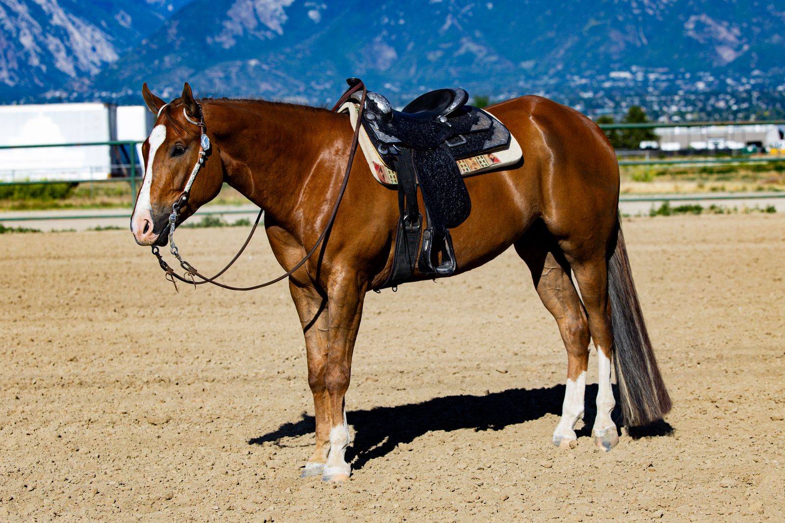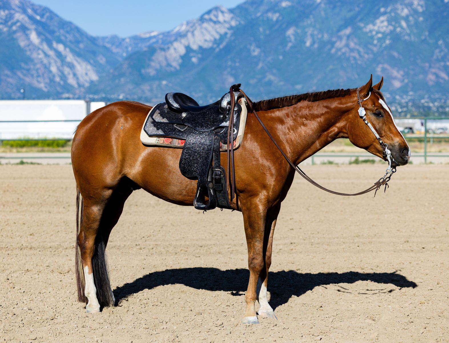 Has competed in 4-H two-handed and Utah Quarter Horse shows in Western Pleasure, Horsemanship, and Showmanship. Hauls well and settles in easily at shows with no lounging required.
