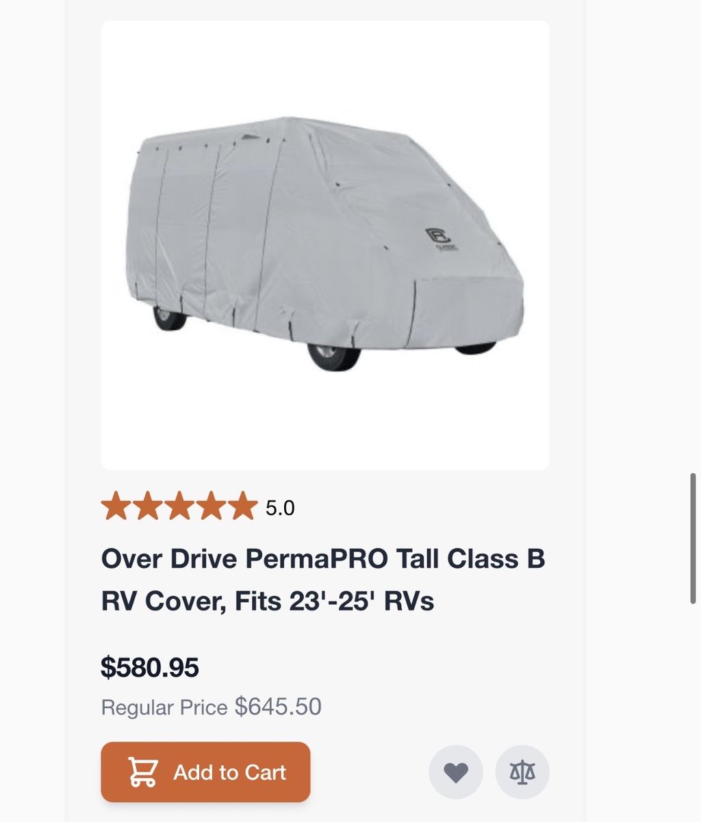 Lightly used once. It fit my Ram Promaster 159” high top (20.9 feet)