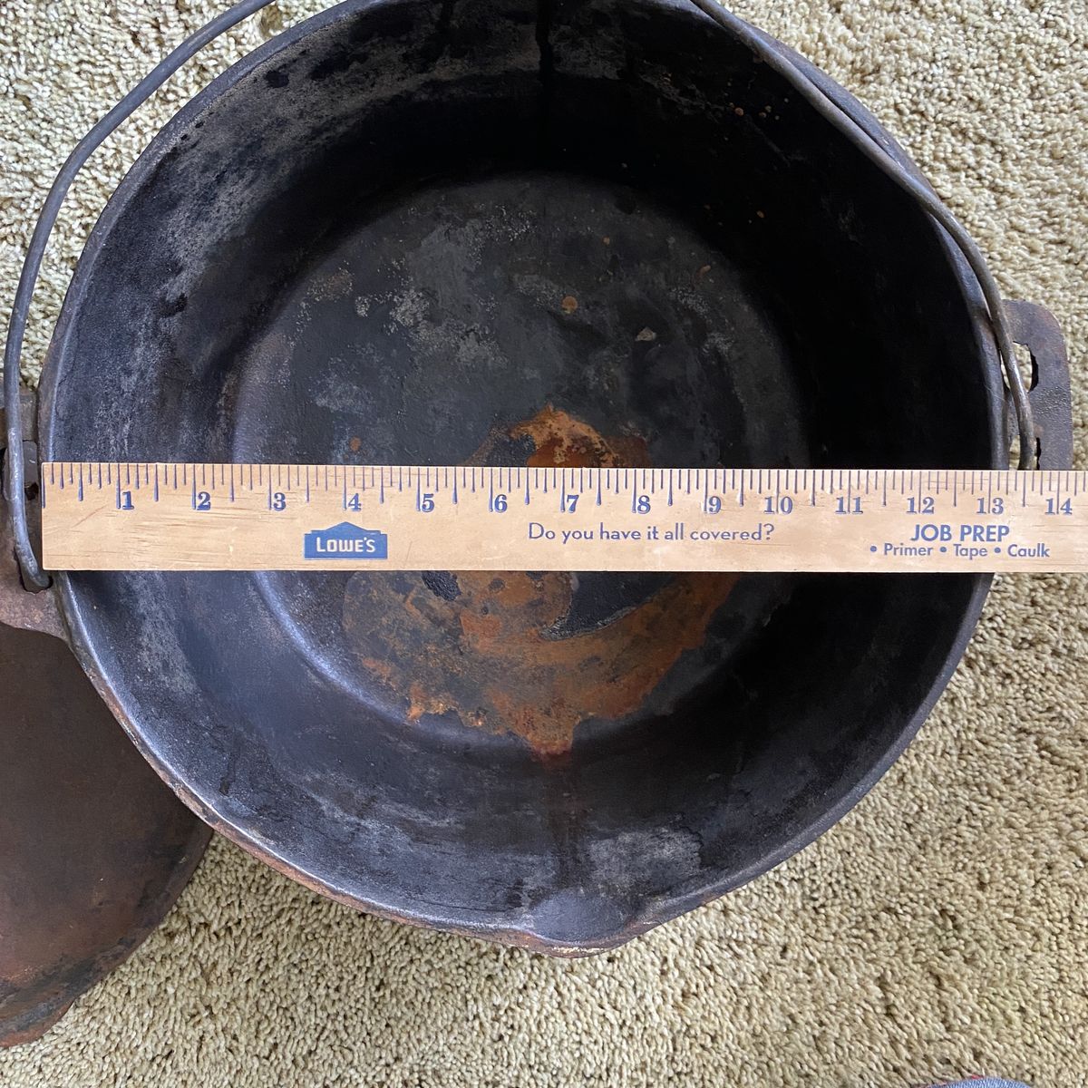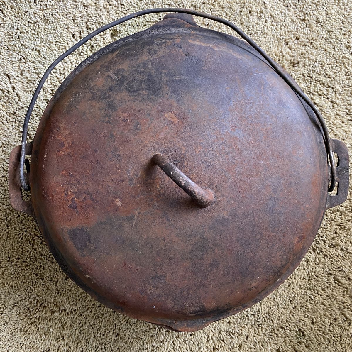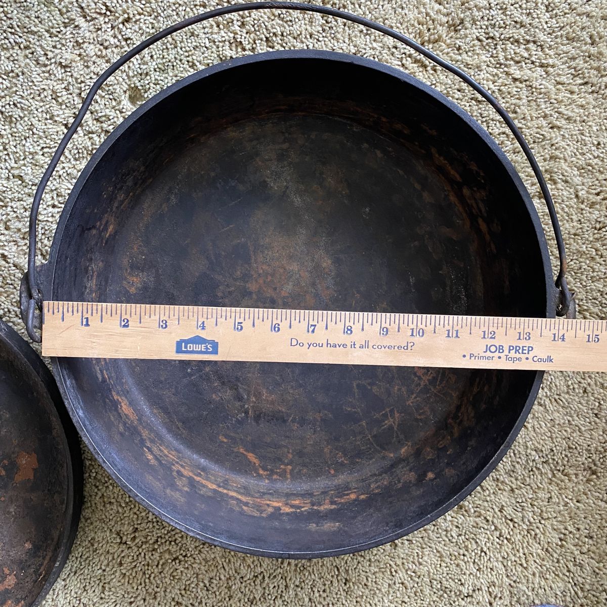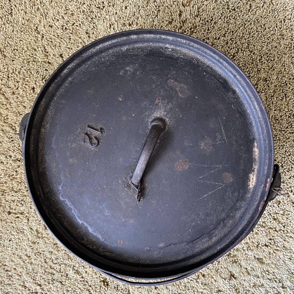 3 large dutch ovens. These belonged to my Grandpa and have been used a lot. Measurements are in photos. They are heavy.