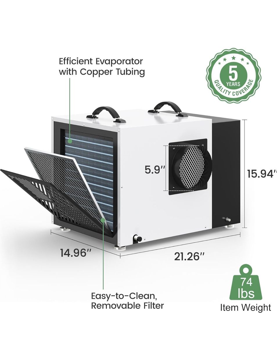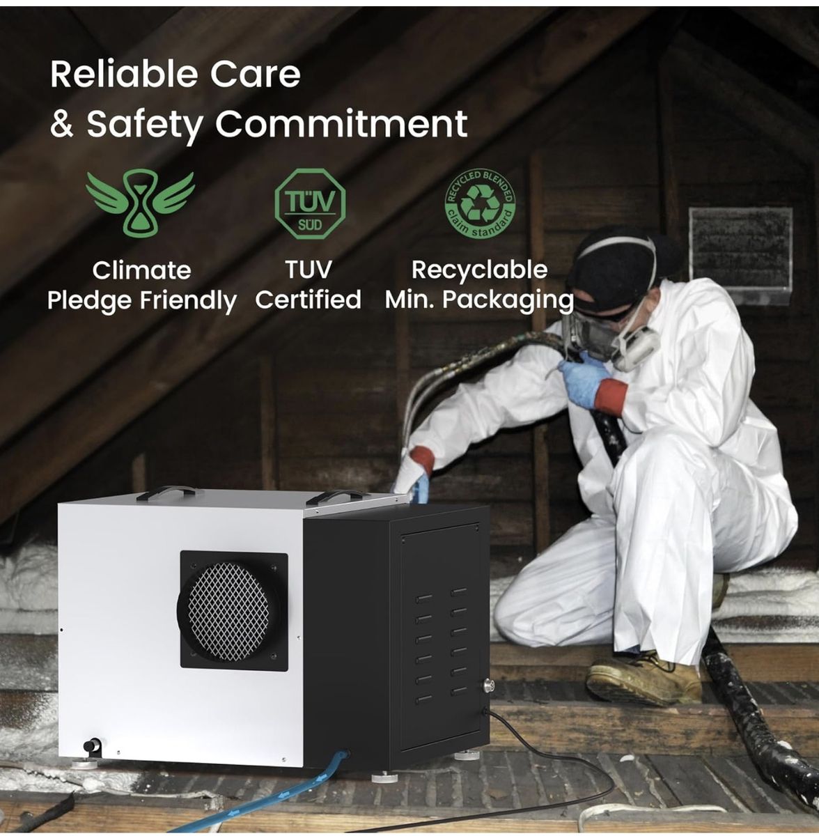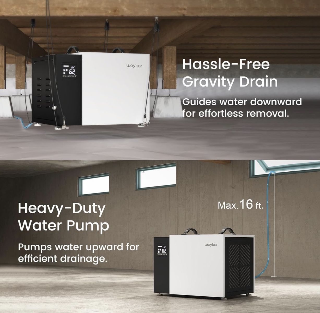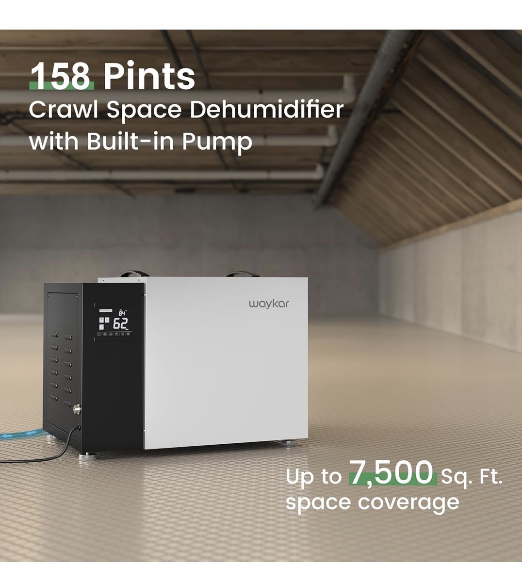 Waykar 158 Pint Commercial Dehumidifier with Pump and Drain Hose for Crawl Spaces, Basements, Ducted Industrial Use, and Water Damage Unit, for Spaces up to 7500 Square Feet, Smart Humidity Control