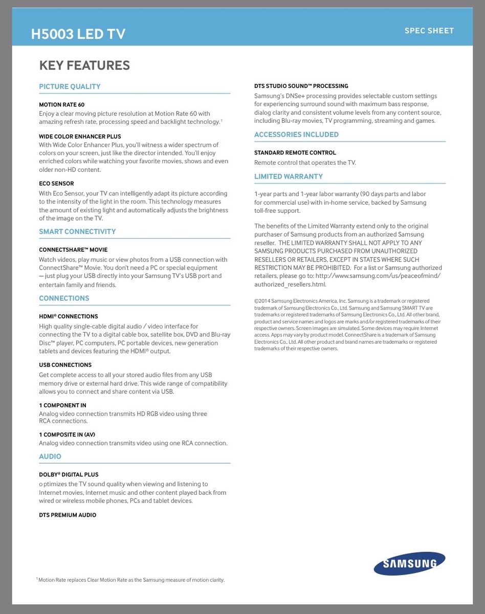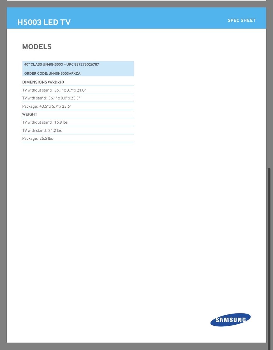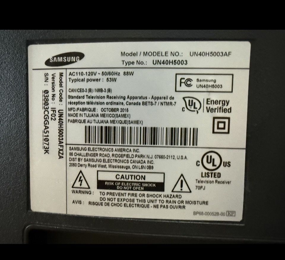 VenmoSamsung 40 1080P HD LED TV Includes stand and wall mount. Work great, no problems. NO remote-you will need to buy a universal remote. See specs in pictures for more info.