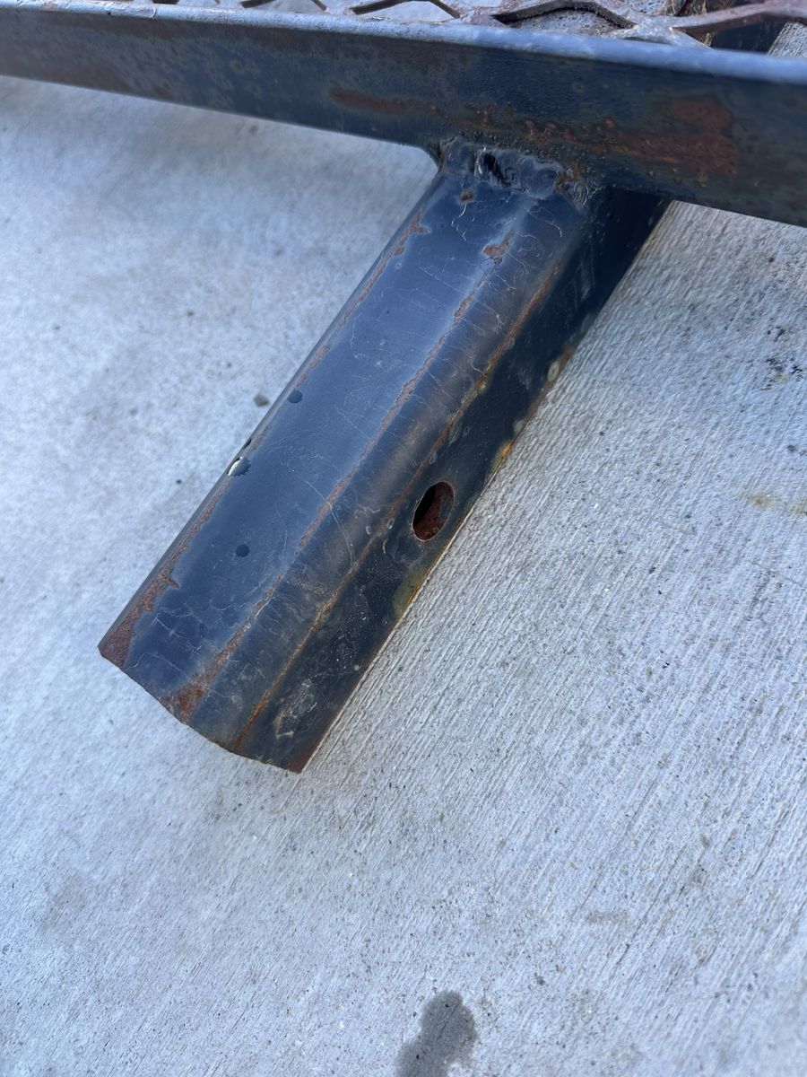Solid steel. Built by professional welder. (Not a cheap online cargo carrier)