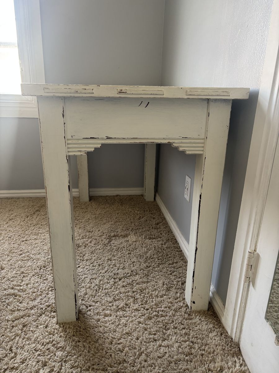 ZelleWhite desk with 2 drawers on the front.