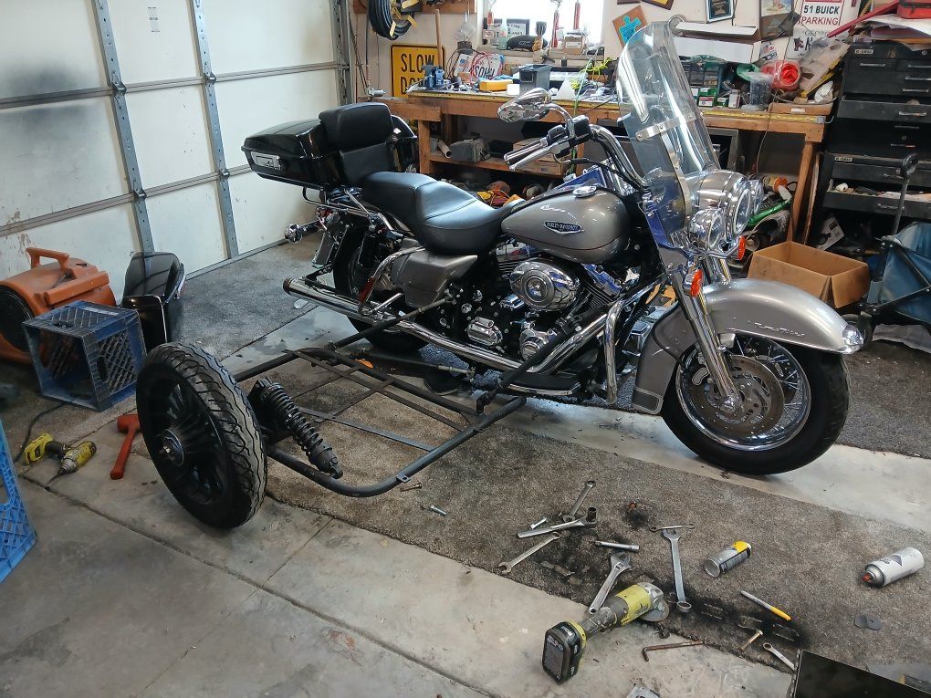 2007 Road King is ready to take you on countless miles.. Had It hooked to a sidecar for the last 2 yrs with zero problems. motor is very strong and trans Shifts fine. no worries on that for yrs to come. Has new hard bags and razor tourpak, leather bags included too. 96in motor 29884 miles New seat, old bigger seat included too good tires added non air shocks