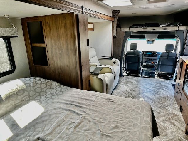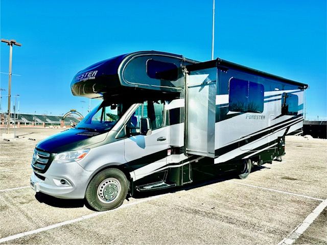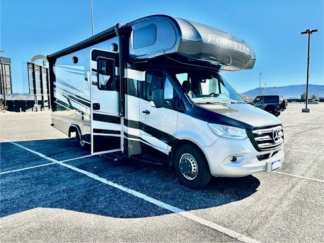 Price will be lowered weekly until sold, I must get rid of it. Like new! 2022 Mercedes 3500 Forest River Forester, MBS 2401B. Just 10,200 miles! 3L 6-cylinder turbodiesel Mercedes engine, 325 ft lbs. torque, 7-speed transmission. Obsidian Full Body Paint. Automated Hydraulic Leveling system. Onboard Cummins/Onan 3600 Watt generator. Premium Camping Package with heated tanks for cold weather camping. Solar is built in. 13-gallon propane tank. Three TVs, one for outside viewing. Electric recliners. Touch screen control panel for the house,10- inch touch screen info system for the Mercedes chassis. Cordless phone charger x2. Water filtration system. Back-up and side view cameras. Lane detection monitoring system. LP quick disconnect for optional outdoor grills. Stainless steel convection microwave oven. Propane cooktop. 15,000 BTU air conditioner. Auto-sensing windshield wipers. Automatic Crosswind Assistance. Attention assistance. Adaptive cruise control. Lane departure assist. Captain’s chairs are 6-way power seats, with 180 degree turn. Brand new house batteries. Large, covered slide-out. Large awning. Tons of storage! Black tank flush system. 10 cup holders! This unit has a lot of features! The Electric Recliners un-bolt, if the next owner wanted to convert to a dinette/sleeper bed.