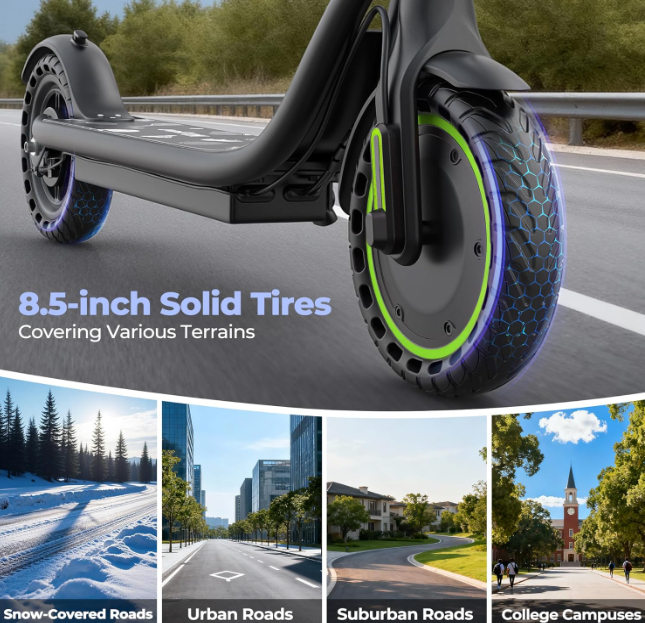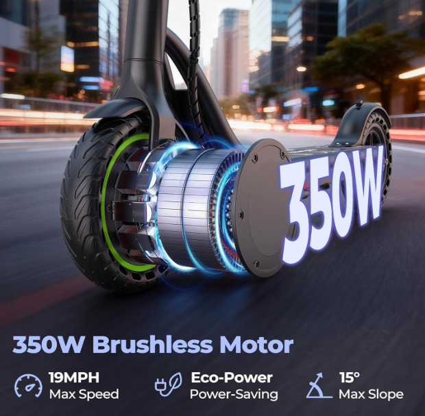 ZellePowerful 350W Motor: This electric scooter is equipped with a 350W brushless motor (peak 700W) with high torque, easily climbing 15° slopes. It reaches speeds up to 19 mph, bringing you efficient, stable, and dynamic daily commuting