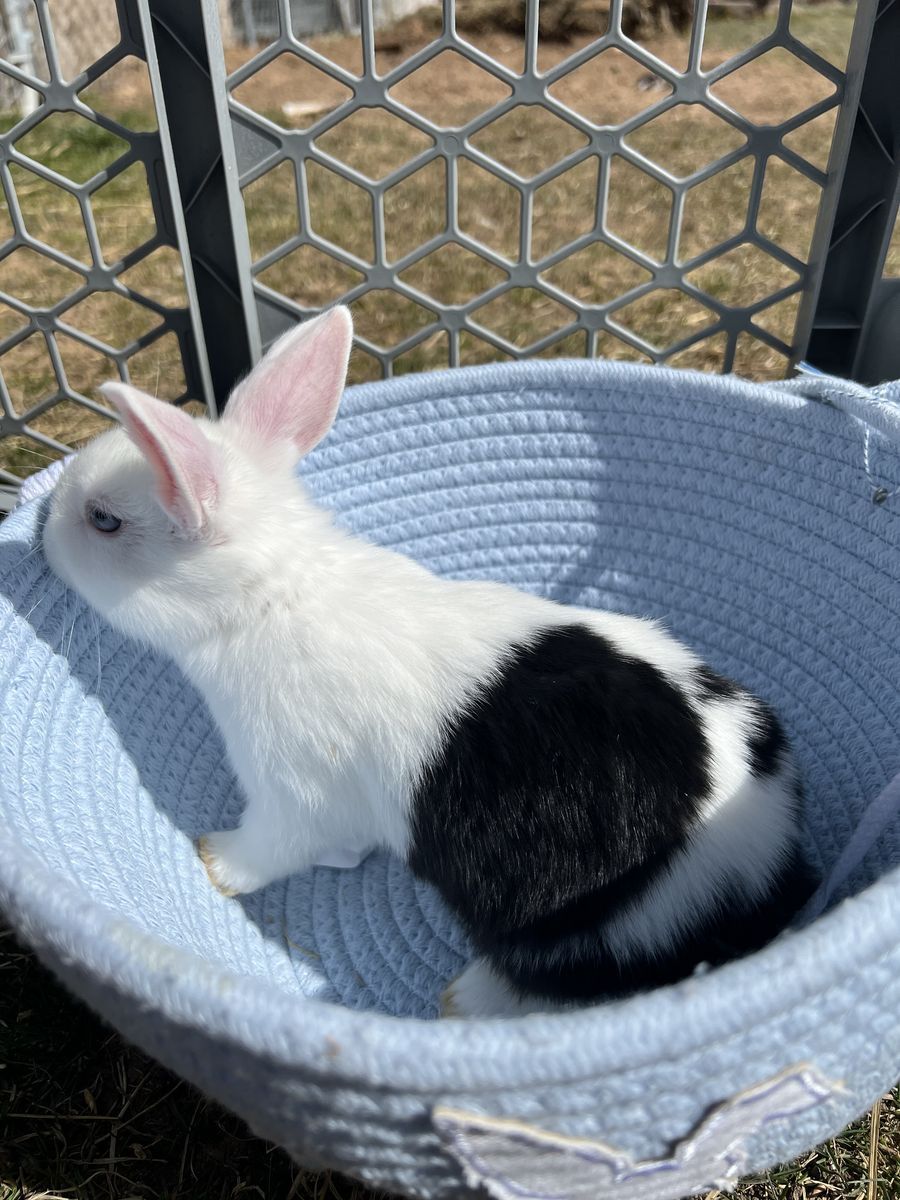 Venmo5 week old Dutch Rabbit. He has the prettiest blue eyes and he has the perfect outline of black around one of his eyes. He will be ready to go March 29, but i can hold till April 4 if needed with a down payment. These babies have been around other bunnies, dogs , cats chickens and little kids. (youngest is 3) They are used to being held and loved on.